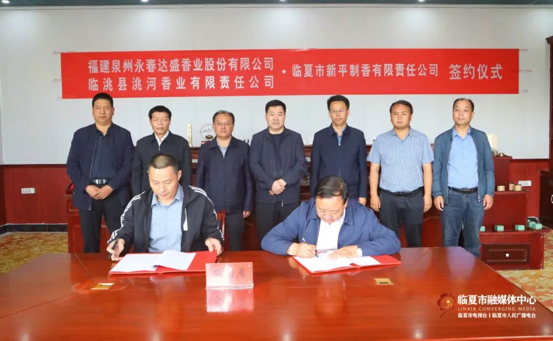 5月31日,福建泉州永春达盛香业董事长洪清洁、总经理姚正贤,临洮洮河香业董事长李启华一行到临夏市新平制香公司开展考察洽谈并签约。州政协副主席戴永华,市委副书记、市长刘尚增,州工信局局长沙明文,州工信局副局长董汛,市政府副市长马旭凯陪同。