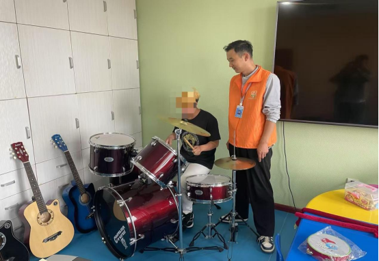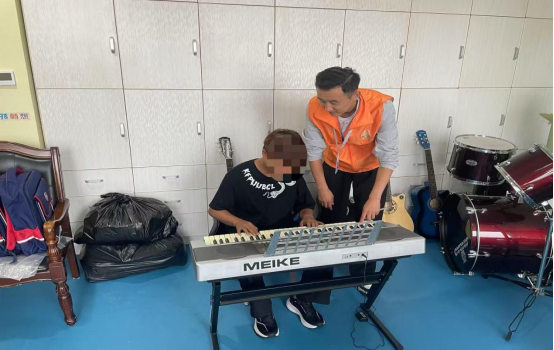 儿童到站后,驻站社工迅速启动 "一站式" 关怀服务,通过耐心沟通摸清其家庭背景与兴趣偏好,量身定制帮扶方案;以兴趣为切入点开展多元化关爱活动。在活动室陪伴孩子弹琴击鼓,让音乐律动驱散阴霾、打开心扉;同步组织观看法治教育片,结合真实案例讲解未成年人保护法等法律知识,助力孩子们树立法治观念、提升自我保护能力,在轻松氛围中实现心理疏导与法治教育的双重成效。