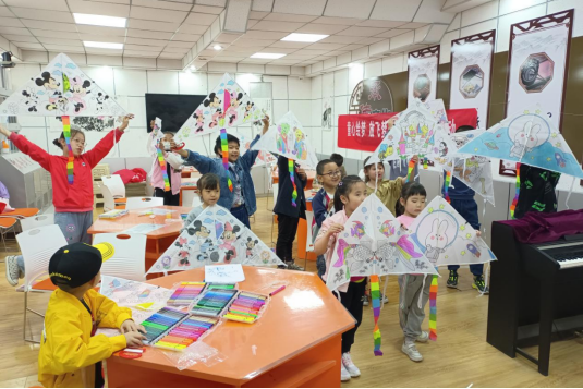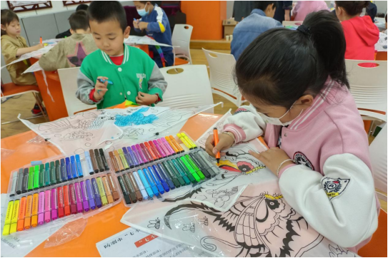 活动过程中,手握画笔的孩子们各个聚精会神,俨然大师一般在风筝上作画,五颜六色的花朵、各种卡通人物、可爱的小动物……在孩子们的奇思妙想中跃然于风筝之上。