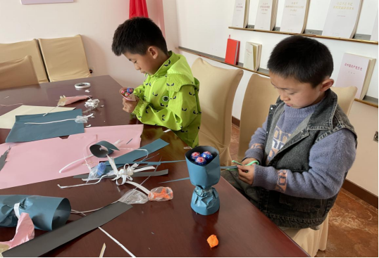 活动伊始,社工老师介绍本次活动的主题和流程,给大家讲解棒棒糖花束的制作步骤以及注意事项,并为大家示范制作的过程。随后,大家一起动手制作棒棒糖创意花束,社工与志愿者分工明确,协助分发棒棒糖、竹签、雪梨纸、包装纸、丝带、胶带、剪刀等物料,参与的儿童在社工老师的带领下,裁纸、包装,玩得不亦乐乎。看着手中的棒棒糖创意花束雏形渐显,大家成就感满满。不一会儿,棒棒糖花束就做好了,大家互相观看作品,交流技巧,现场欢笑不断。最后,孩子们拿着亲手为自己制作的六一儿童节礼物“棒棒糖花束”合影留念,记录下一段愉快的时光!