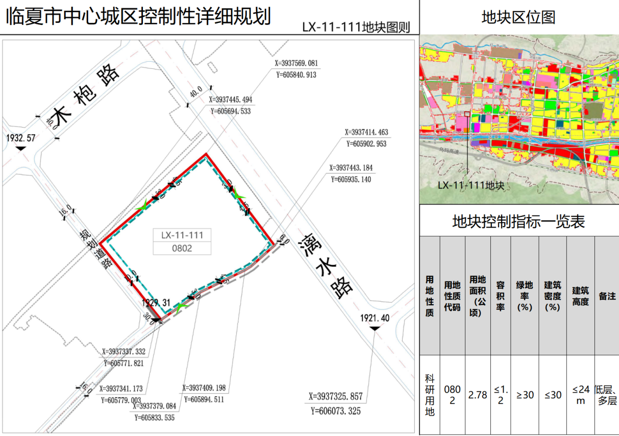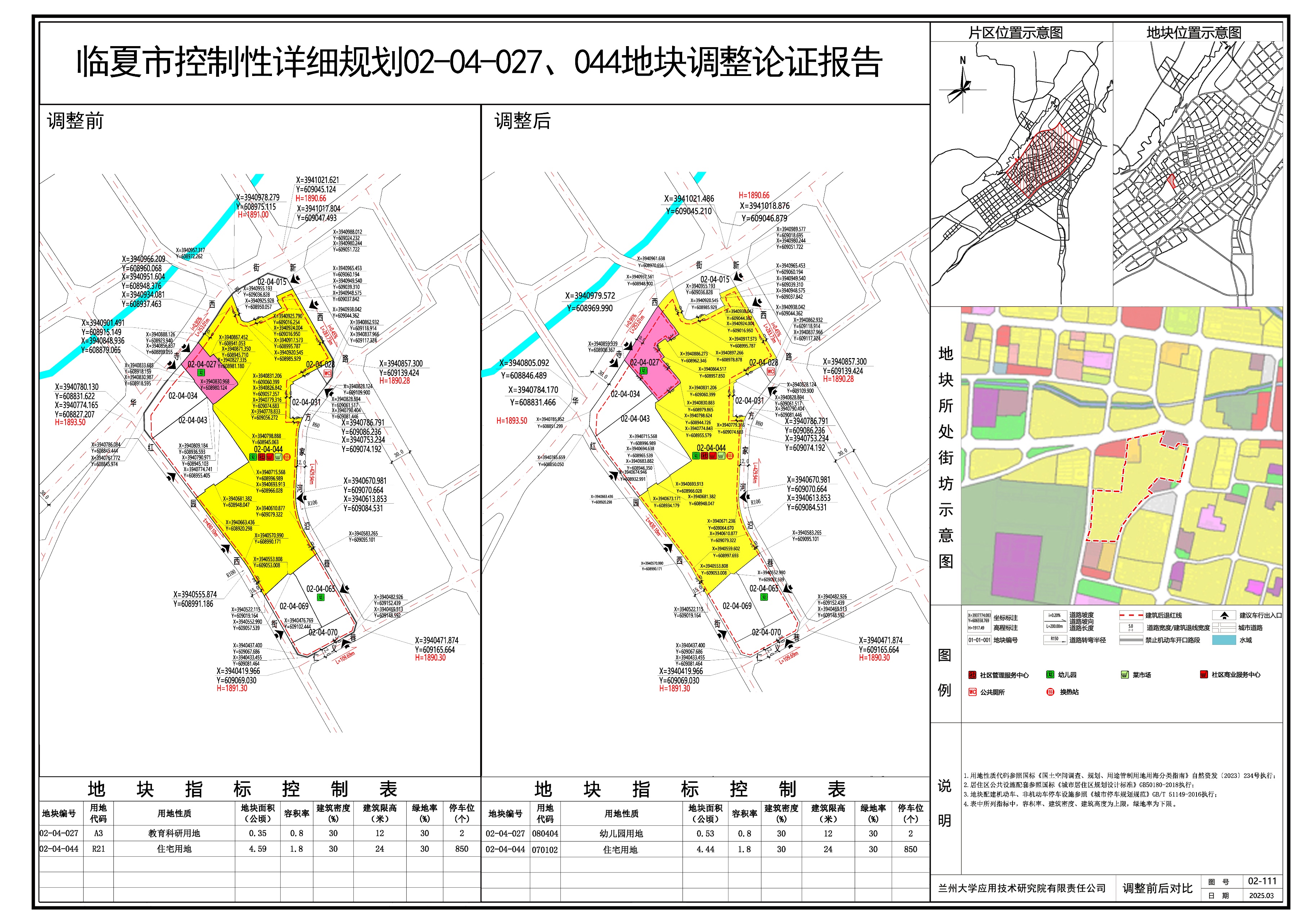 本次论证地块位于临夏市华寺西街路南侧,老华寺西侧。位于《临夏市控制性详细规划》02单元内,地块分别为02-04-027:规划用地性质为教育科研用地,规划用地面积3511.43平方米;02-04-044:规划用地性质为二类居住用地,规划用地面积45891.10平方米。