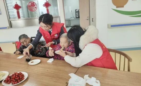 经过近两个小时的忙碌,一盘盘形态各异、饱满鲜香的饺子新鲜出炉。工作人员与志愿者们将热气腾腾的饺子细心分发给每一位老人,对于行动不便的老人,更是贴心地送餐到房间,让他们足不出户也能品尝到节日的美味。咬下一口鲜香的饺子,老人们脸上都绽放出幸福的笑容,纷纷称赞:“这饺子吃着比家里的还香,谢谢大家的关心和照顾!” 活动期间,大家还不忘为老人们送上诚挚的节日祝福,关切地询问他们的生活近况和身体状况,让老人们在寒冷的冬日里,深切感受到来自社区与社会的浓浓暖意。