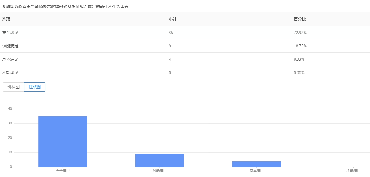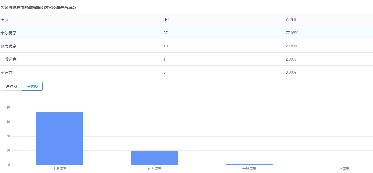 2023年3月23日,通过市政府网站向民众开展了《临夏市政策解读工作调查问卷》,(问卷链接:临夏市政策解读工作调查问卷)现将调查结果公示如下: