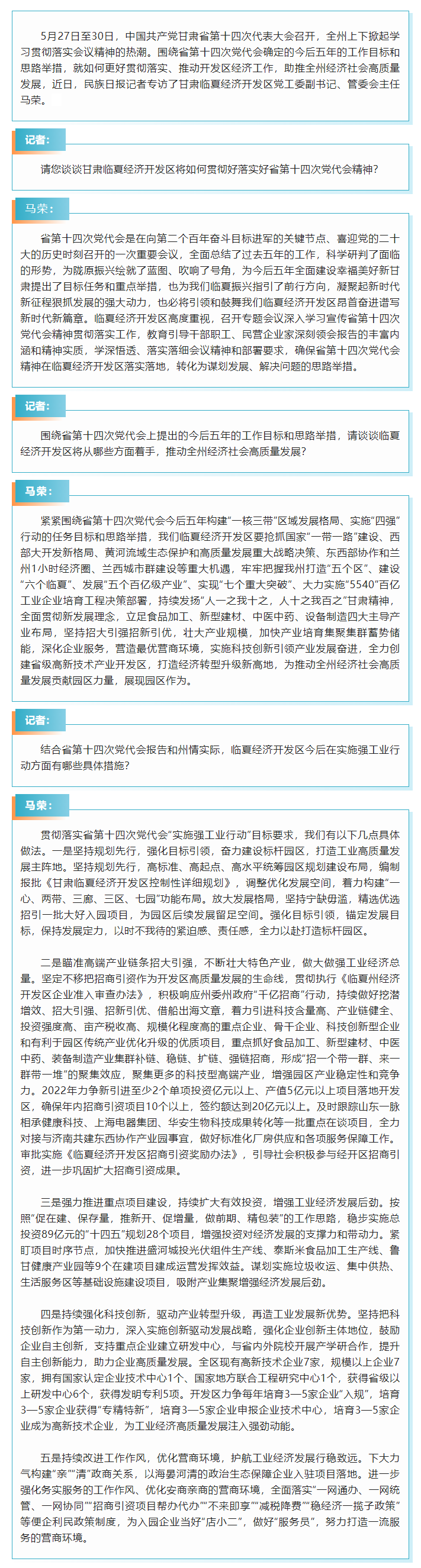 砥砺奋进敢为先 风劲正是扬帆时——甘肃临夏经济开发区党工委副书记、管委会主任马荣答记者问