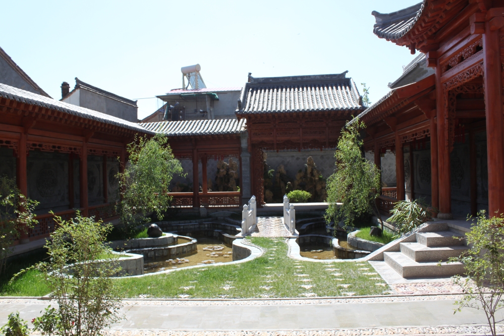 民间建筑艺术,八坊位于临夏市区西南,是一片回族聚居区。八坊民居多以四面合围、对称封闭式的小型四合院为特征。这种四合院有大有小,都讲究中国传统的坐北朝南建房方位,修有三间堂屋(上房、正房),两侧各修有耳房,院子的东西两侧分别建有厢房三间。房屋建筑讲究对称、均衡格局。式样有“一挑檐”、“两溜水”、“卷棚”等。木架多为五架檩,前檐放飞椽,梁头雕“鹁鸽头”。正门多用青砖瓦、仿古典木牌坊砌门头,门两侧垂头上常饰以砖雕花卉。大门多开在东南或西南角,门扇大多用木质,油漆漆成黑或赭色,上钉铜门环。进门正面则是一面立式影壁,多用砖砌成砖雕的山水字画镶嵌其中。大门、里门、房眉、垂头等处施以深浅浮雕、镂空木雕。 2009年,八坊民居列为州级非物质文化遗产名录。