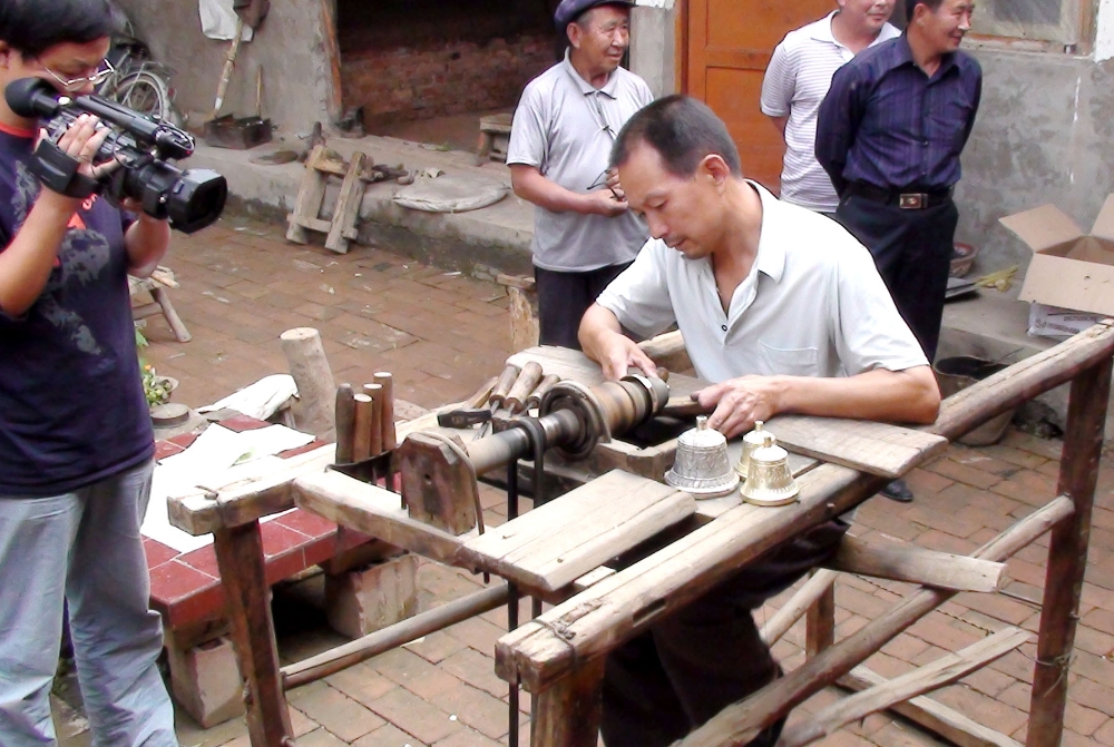 甘肃省临夏市枹罕镇铜匠庄村,因世代制作加工铜铸制品而得名。据《临夏文史资料》记载:民国年间和改革开放初期,该村有铜艺制作匠人,他们以制作藏族生活用具和宗教用品为主业,产品主要有铜锅、稣油灯等。清末至今,由于回藏贸易的发展,他们制作的铜器以藏族用品为主,主要有生产生活用品铜锅、门环、奶勾等;宗教用品有金刚铃、金刚杵、小型佛像、稣油灯、净水碗以及泥铸小型佛像用的擦擦(印版)等,产品主要销往青藏、西藏、四川以及内蒙古等地。2011年,列为省级非物质文化遗产名录。