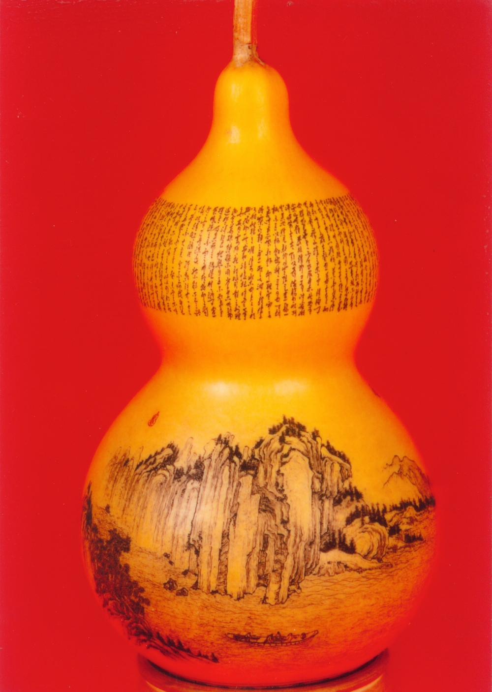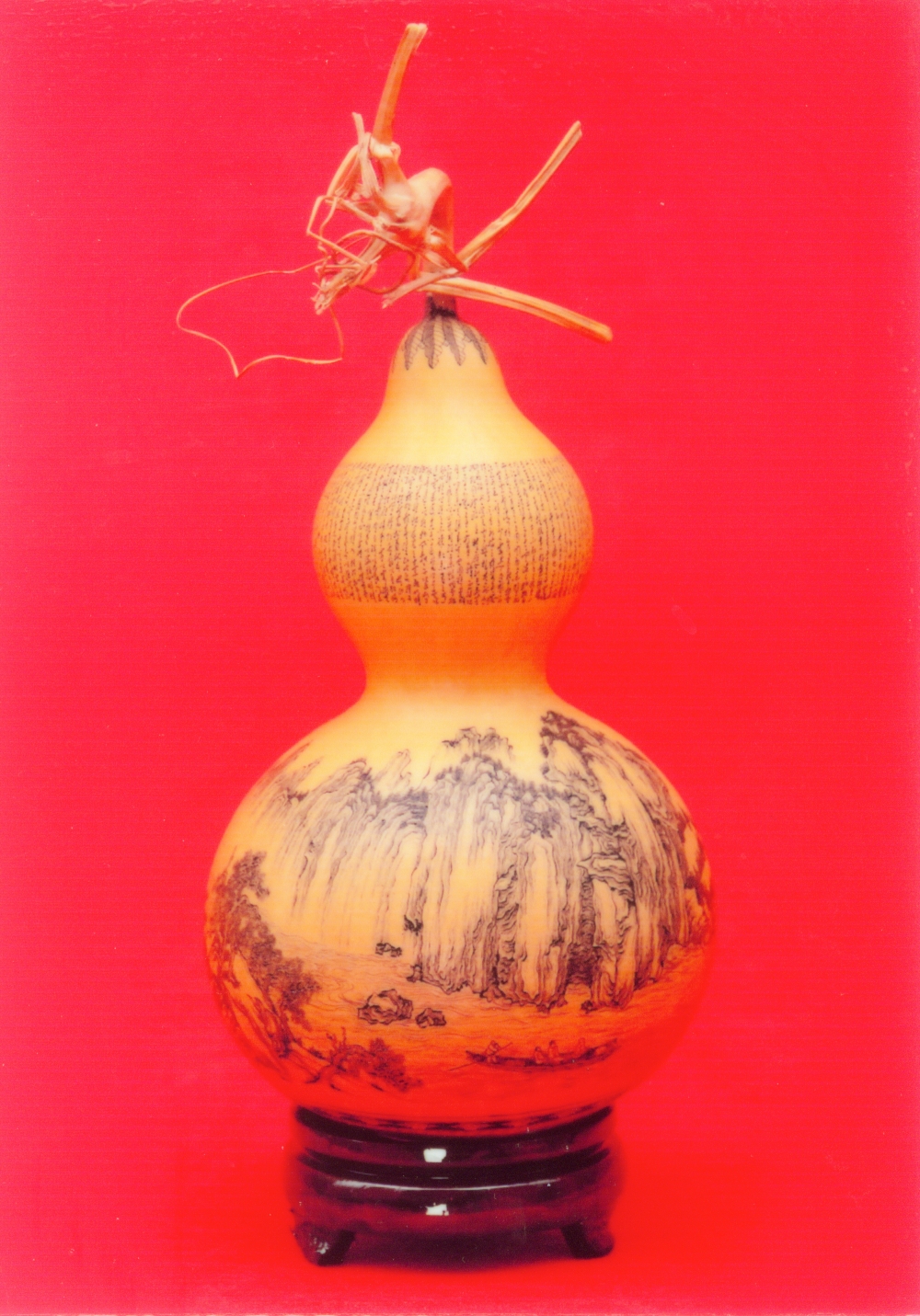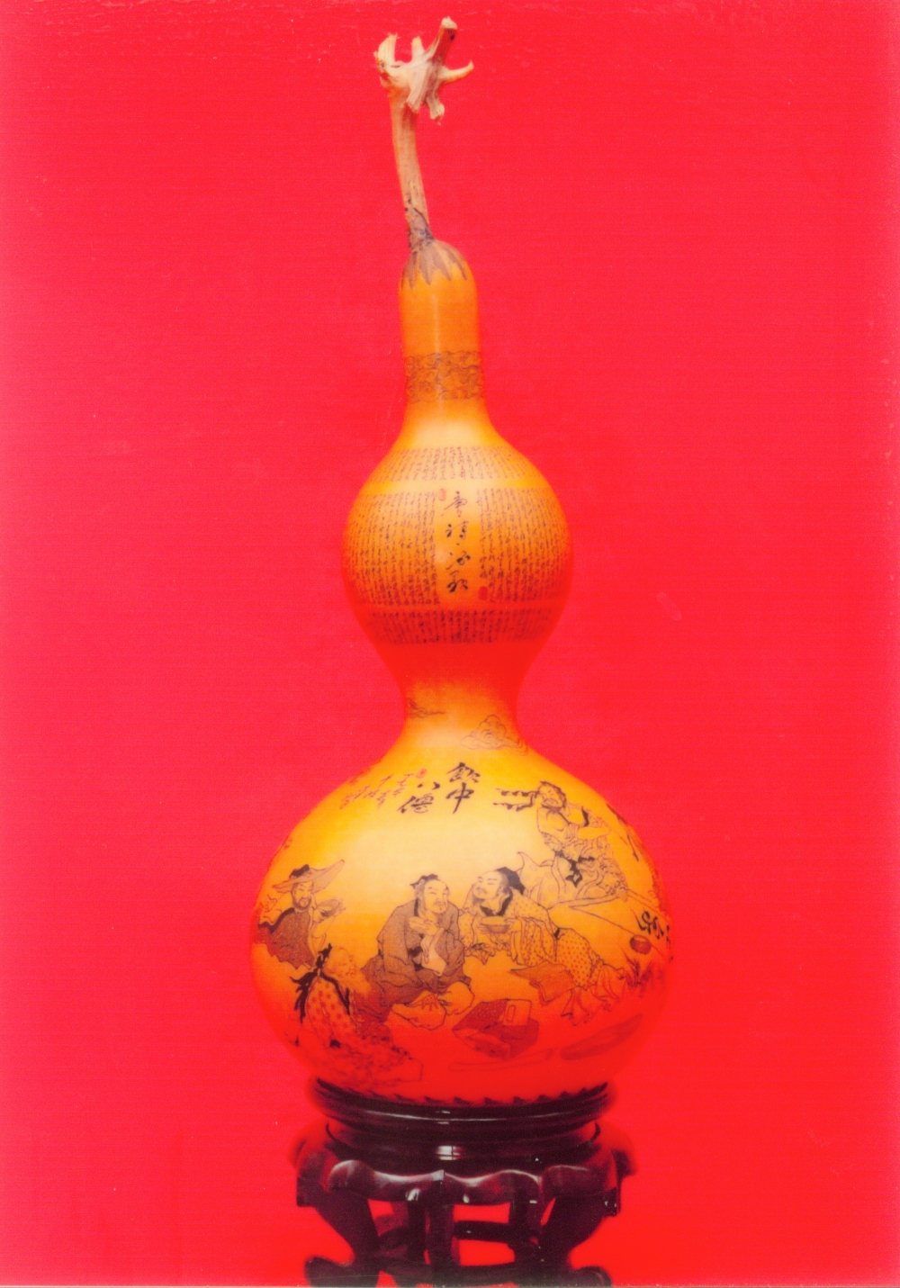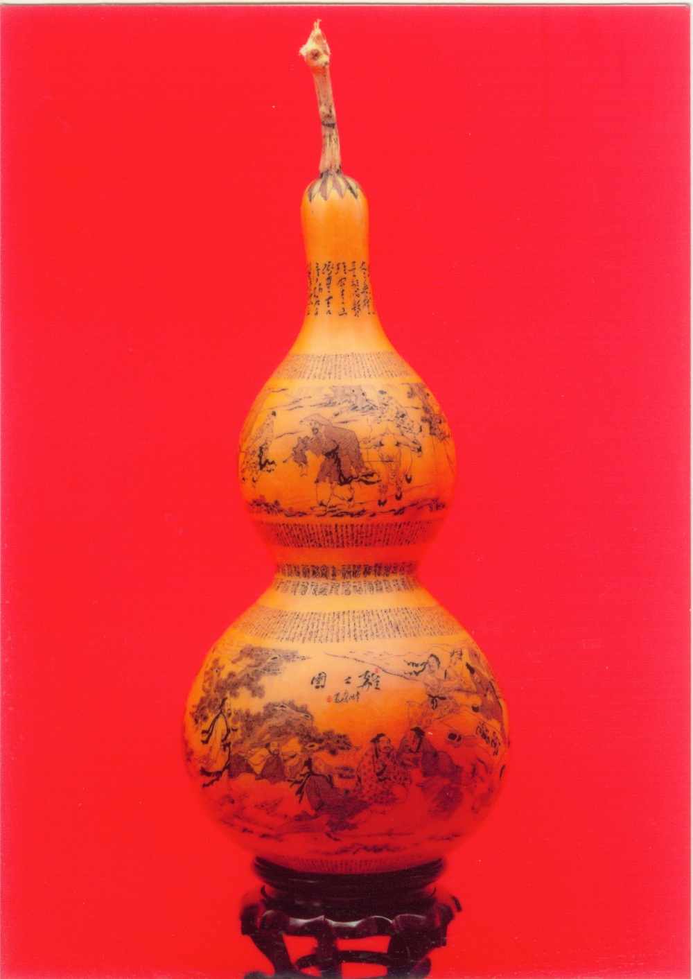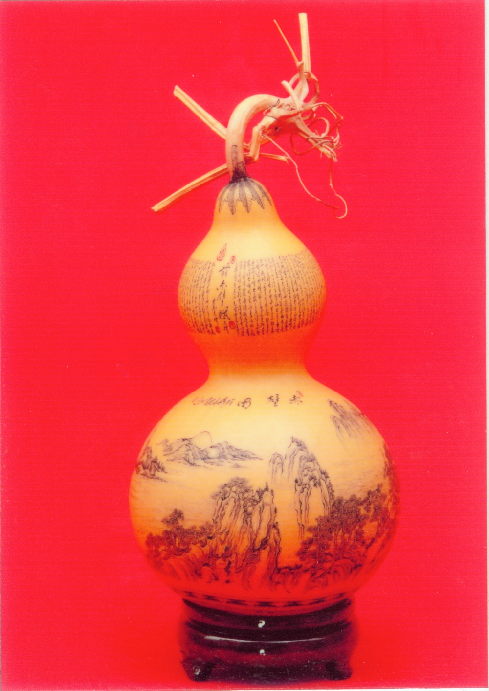 临夏民间工艺美术。其技法以中国画线描技法为基础,将人物、山水、花卉、飞禽走兽刻入天然葫芦表面,表现题材多为传统戏剧、神话故事、山水花草、民族风情等。在民间艺人们的不断探索和创新中,形成了开口、掏籽、挖瓤、晒泡、刮皮、上光六道完整的制作程序。雕刻葫芦构思巧妙,图案精美,刀法娴熟,方寸之间尽显大千世界,形象逼真,品位高雅。由于临夏雕刻葫芦艺术性、工艺性极强,现已成为临夏特有的民族工艺品和旅游纪念品。目前主要艺人有甘肃省中国工艺美术特级大师马耀良、甘肃省一级工艺美术大师马世贤、甘肃省二级工艺美术大师唐占鸿、康建林、张作良、杨永龙、高宝福等一批民间艺人。今年来,临夏市举办了葫芦雕刻技能培训班,大力拓宽就业渠道和技术含量,为传承非物质文化遗产,打造民族特色品牌,发展葫芦雕刻产业创造了条件,奠定了良好的基础。2006年,临夏刻葫芦列为省级非物质文化遗产代表性项目名录。