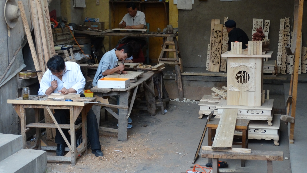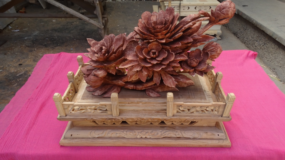 地方民间手工艺,河州木雕主要用于古典建筑和民居的内外装饰及家具、摆件,多采用松木,梨木,也有名贵的楠木,红木等外来木材。结构构思严谨,造型洗练,工艺精致,明清时期,木雕已发展成一种专门工艺。河州木雕主要雕刻内容有龙、凤、狮、麒麟、虎、牛、鹿、各种花卉、法轮、法螺、金鹿、木鱼、金幢、宝盖、宝瓶及吉语和吉祥物等。现存于临夏红园、临夏万寿观的玉皇殿、真武殿、紫微殿、伊斯兰教各拱北、汉族寺院等处。2017年,河州木雕列为省级非物质文化遗产名录。