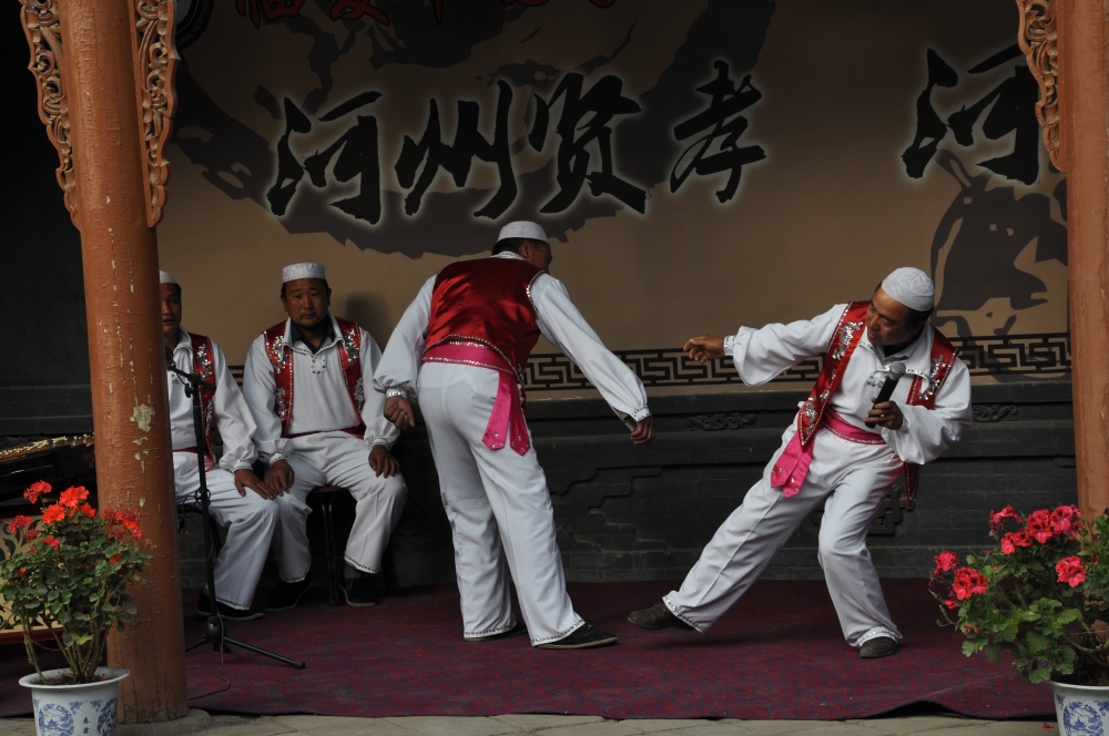 民间说唱艺术,宴席曲也称“家曲”,主要是少数民族在婚嫁喜庆宴席间载歌载舞的歌舞形式。一般由二人、四人、八人组成对偶,有节奏地头部摆动,拳术式手舞足蹈,饶有风趣地表现欢乐和赞颂情趣。宴席曲大致可分为散曲、叙事曲、五更曲、说唱曲等。内容范围广泛,有歌颂历史人物和叙述历史故事的,有美好的祝词,更多的是即景生情的现编现唱。代表曲目有《数螃蟹》、《数麻雀》、《绕口令》等,曲调达数十种。回族宴席曲现为省级非遗项目,2010年,回族宴席曲列为临夏市州级非物质文化遗产名录扩展项目。