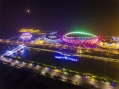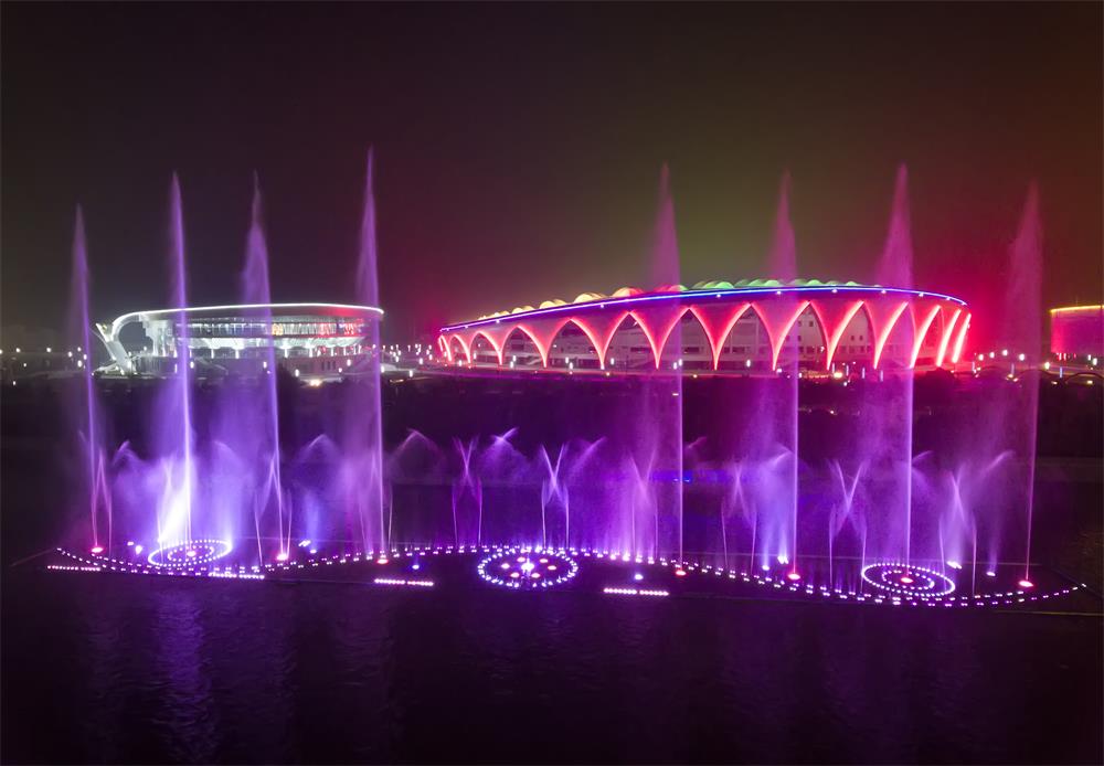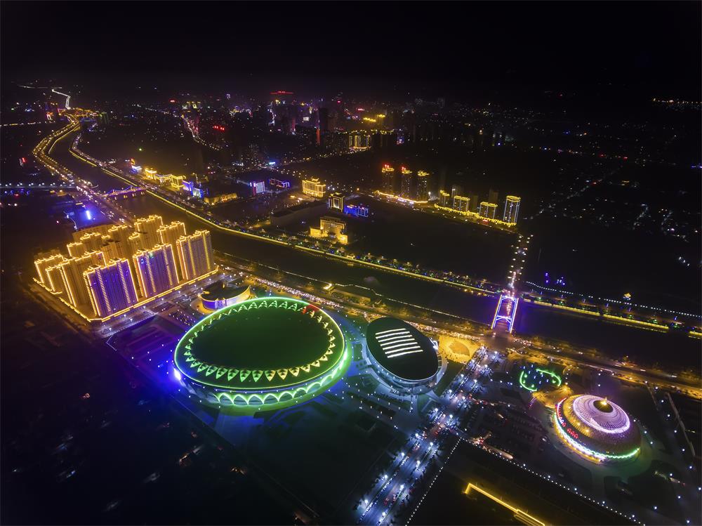 临夏市奥体中心位于临夏市南滨河路,由四个单项工程组成,河州大剧院以绝美的外观屹立在大夏河之滨,体育馆外形似雄鹰展翅,体育场宛若牡丹绽放,博物馆由三朵花瓣聚合而成,奥体中心整体喻意聚合团结,象征临夏文化的交融。 “一河碧水穿城过,两岸秀色锁清波”,每当夜幕降临、华灯初上,这个集体育比赛、群众健身、城市建筑群在大夏河畔熠熠生辉、光彩无限。