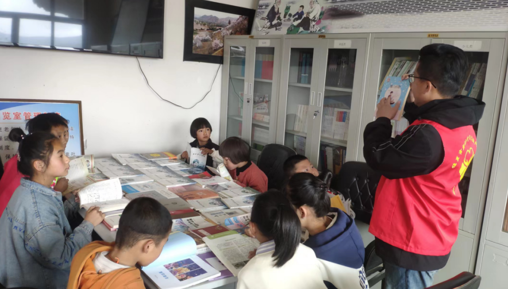随后,街子村工作人员和志愿者带领小朋友们来到室外,为孩子们拿来精心挑选的课外读物,让孩子们自行挑选喜欢的图书,一起在凉亭中进行阅读,读好书,引导孩子们发表读书心得,鼓励他们用自己的语言,发表独特见解,与大家一起互相学习,互相帮忙,彼此交流心得体会。