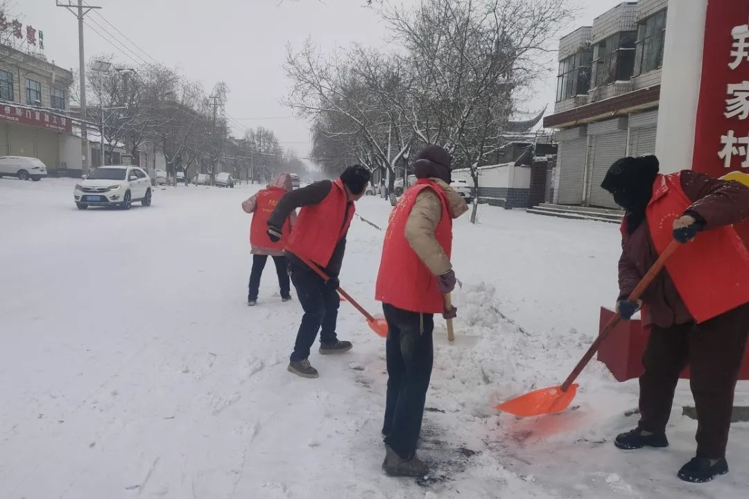 清雪过程中,党员干部冲锋在前,群众积极响应,对镇村主次干道、重点路段、重点路口进行全面清理,共同为群众清扫出一条干净畅通的“安全路”,有效降低了降雪对群众生产生活带来的不利影响。同时,通过微信群、大喇叭等多种渠道,及时发布降雪预警信息和清雪除冰工作进展情况,提醒群众出行安全,并做好应对冰雪极端天气的各项准备工作,确保群众安全出行。