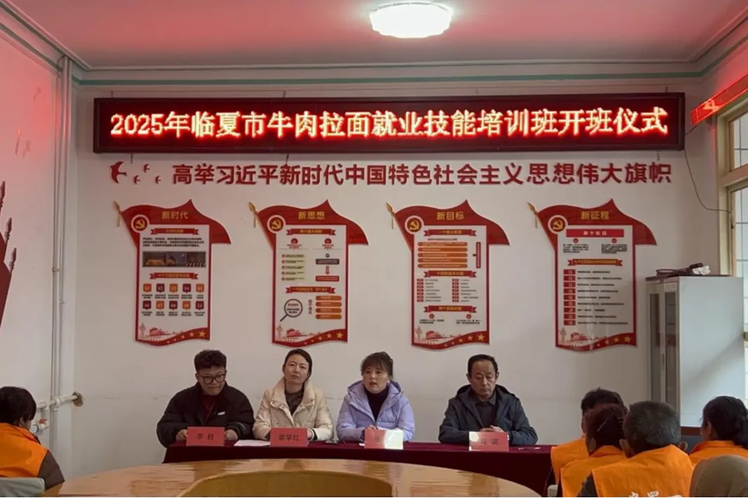2025年临夏市牛肉拉面就业技能培训班在枹罕镇后杨村正式开班,此次培训吸引了 近50名学员积极参与。市人社局、镇劳务办、后杨村及阳光大姐职业技能培训学校相关负责人出席了开班仪式。
