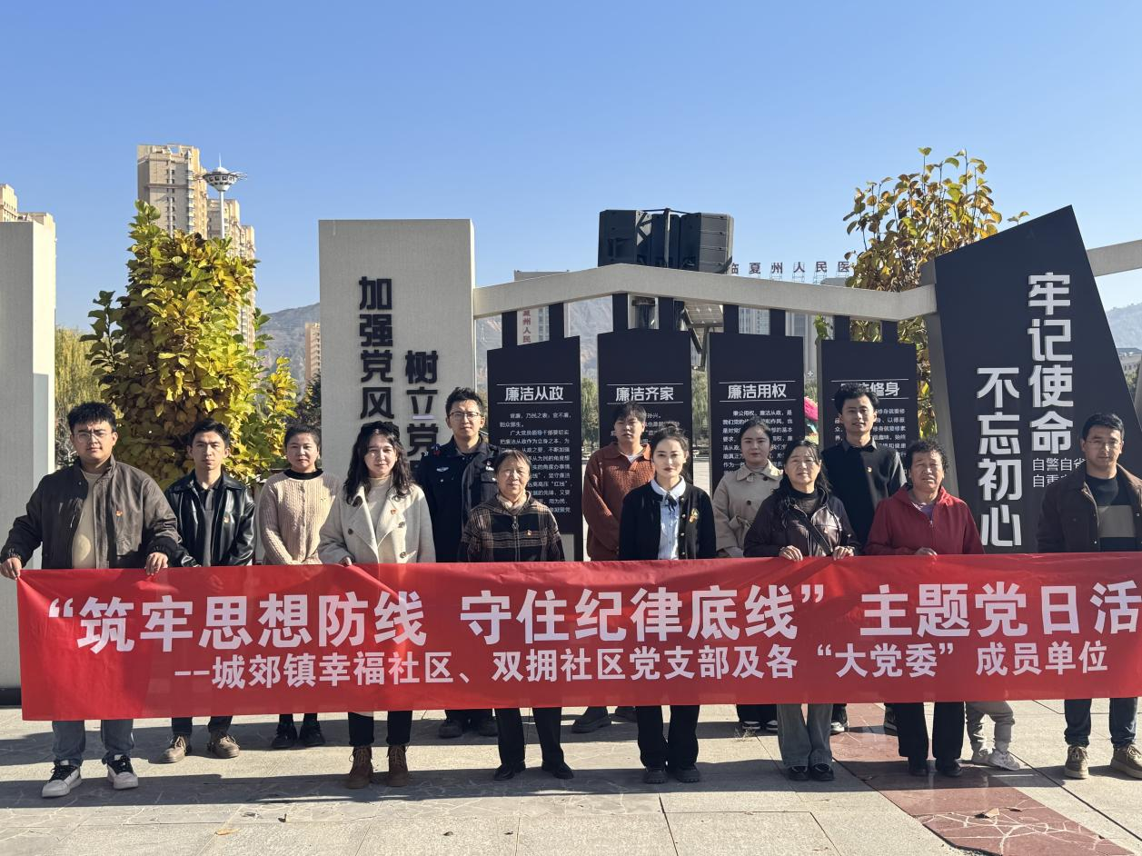 为进一步推动全面从严治党向纵深发展,全面筑牢党员干部廉洁自律和拒腐防变的思想防线。近日,城郊镇双拥社区党支部、幸福社区党支部组织辖区内“大党委”成员单位到市政广场开展“筑牢思想防线、守住纪律底线”廉政教育主题党日活动。
