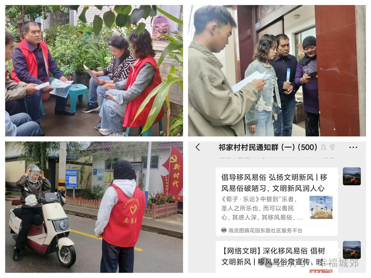 城郊镇祁家村以党建为引领,多措并举破除陈规陋习,培育文明新风。将“婚事新办、抵制高价彩礼”纳入村规民约,经村民代表大会广泛征求意见、公示后落地执行,规劝引导村民行为。同时,借助村民知情大会开展普法讲座,通过微信群推送、入户走访等形式,结合典型案例讲解高价彩礼的社会危害,宣传“低彩礼”“零彩礼”先进事迹,同步普及文明祭祀、孝老爱亲理念,常态化开展“一盔一带”交通劝导工作,助力打造安全、文明、有序的辖区环境,让文明新风浸润乡村每个角落。