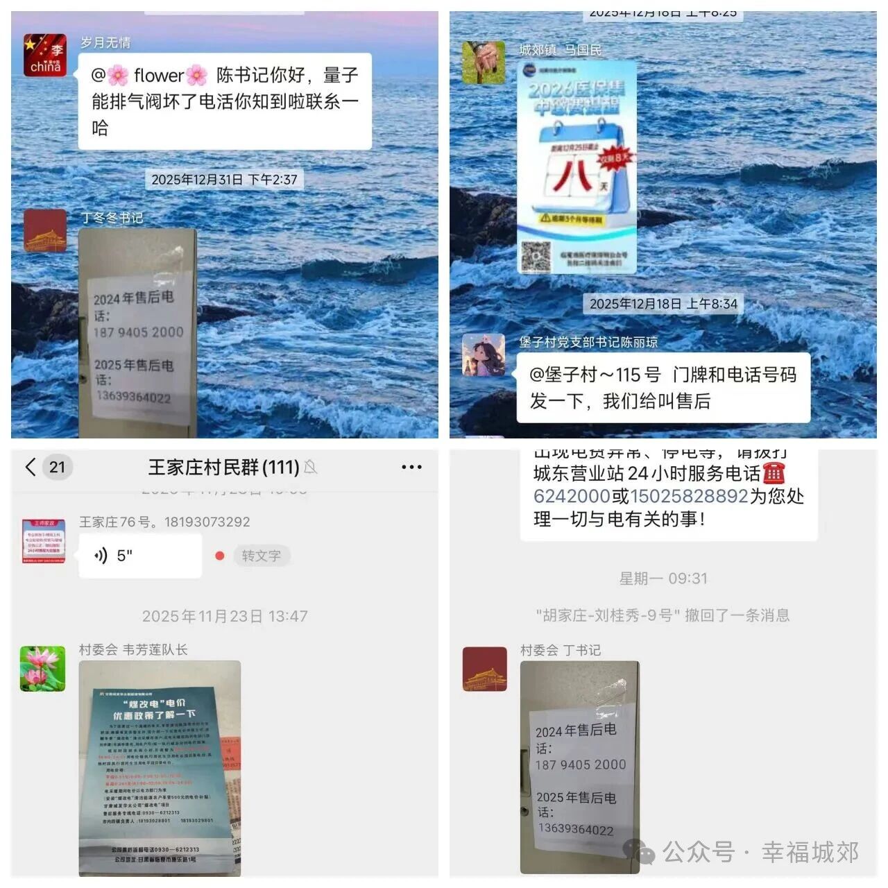 为畅通群众诉求渠道,村上构建“线上+线下”全方位服务体系,线下为每户发放印有应急抢修、供热公司、村委会等联系方式的“便民服务卡”;线上依托微信群,定期推送供暖常识与维修联系方式,及时回应群众需求。