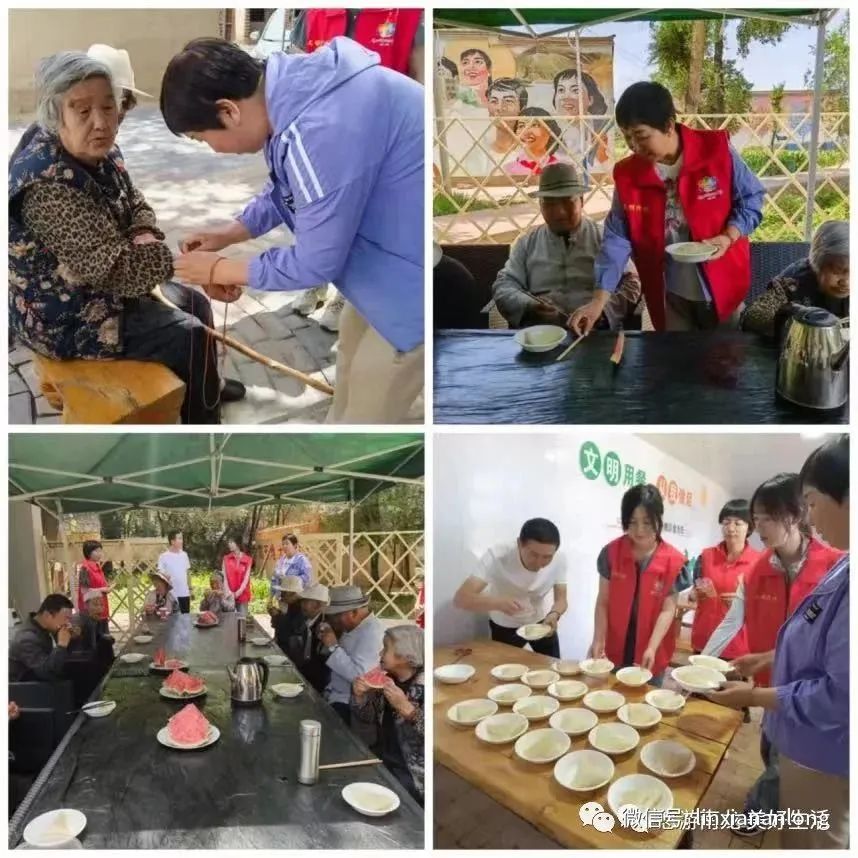 在杨家村“关心关爱幸福食堂”前来就餐的老人们正在聚精会神地观看红色电影《跨过鸭绿江》,村委会还贴心提供了西瓜香蕉等水果用于解暑。前来就餐的马奶奶表示:“电影很精彩,饭菜也很可口。村上很关心我们老年人。平时儿女不在身边,这个食堂成立后,我们随时就能进来吃饭,还能看电影,确实不错”。此外,南龙镇还以“幸福食堂”为依托,推出“粽香飘情”等一系列以“孝”字为核心的志愿服务项目,志愿者在传统节日期间与老人们一起制作粽子,丰富老年人们的精神生活。