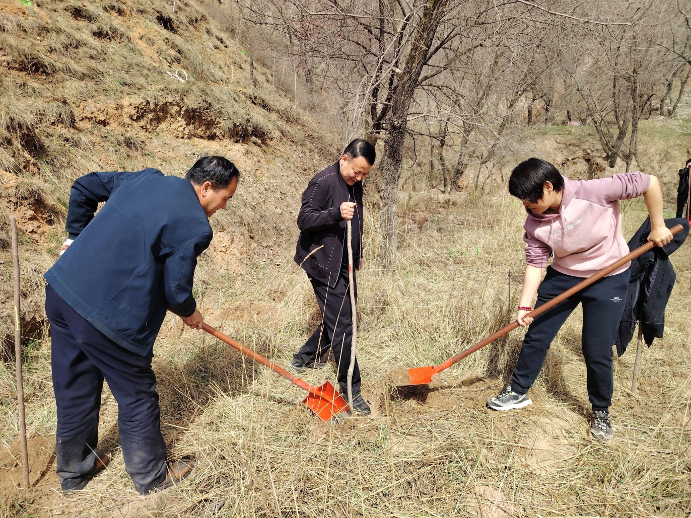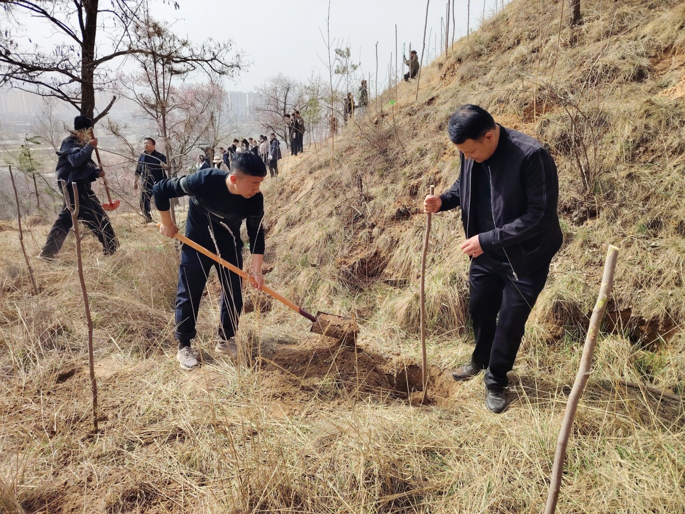植树现场,干部职工们热情高涨、干劲十足,充分发扬不怕苦、不怕累的精神。大家分工协作,有的挥锹铲土,有的扶苗培土,各个环节衔接紧密、配合默契,现场呈现出一片热火朝天的劳动景象。经过一上午的辛勤劳作,共栽植香花槐、连翘200余株,新栽树苗在春风中错落有致、迎风挺立,展现出蓬勃的生机与活力。
