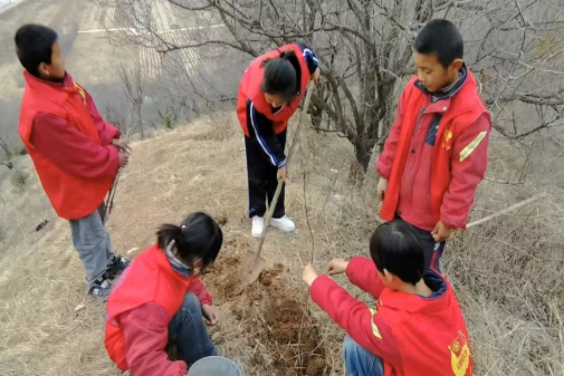 活动中,志愿者为孩子们详细讲解了杏树的生长习性、种植技巧以及植树对生态环境保护的重要作用,孩子们认真聆听,对这次实践活动充满了期待与责任。随后,志愿者为孩子们发放了杏核、杏树苗、小铲子及桶装水等种植物资,孩子们分工明确,一边挖掘种植坑,一边细心放置杏树苗并填土浇水,在志愿者的指导与协助下,孩子们很快完成了种植工作。此次活动,让孩子们在泥土芬芳中读懂了“绿水青山就是金山银山”的生态理念。