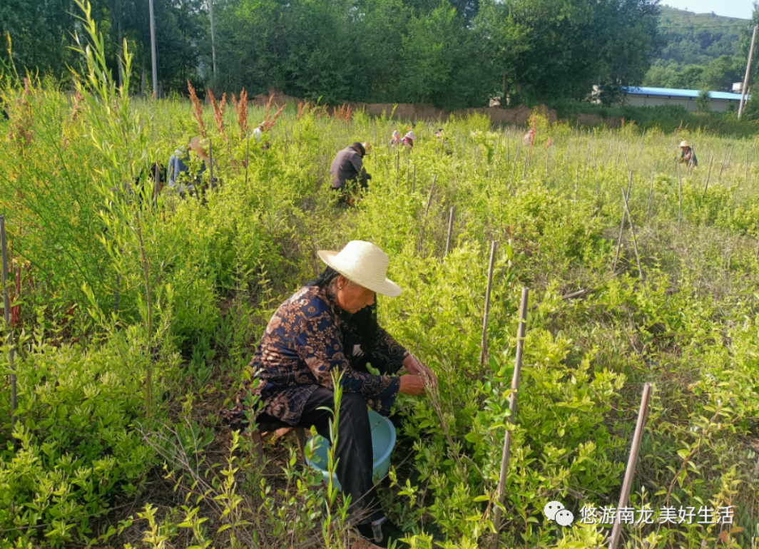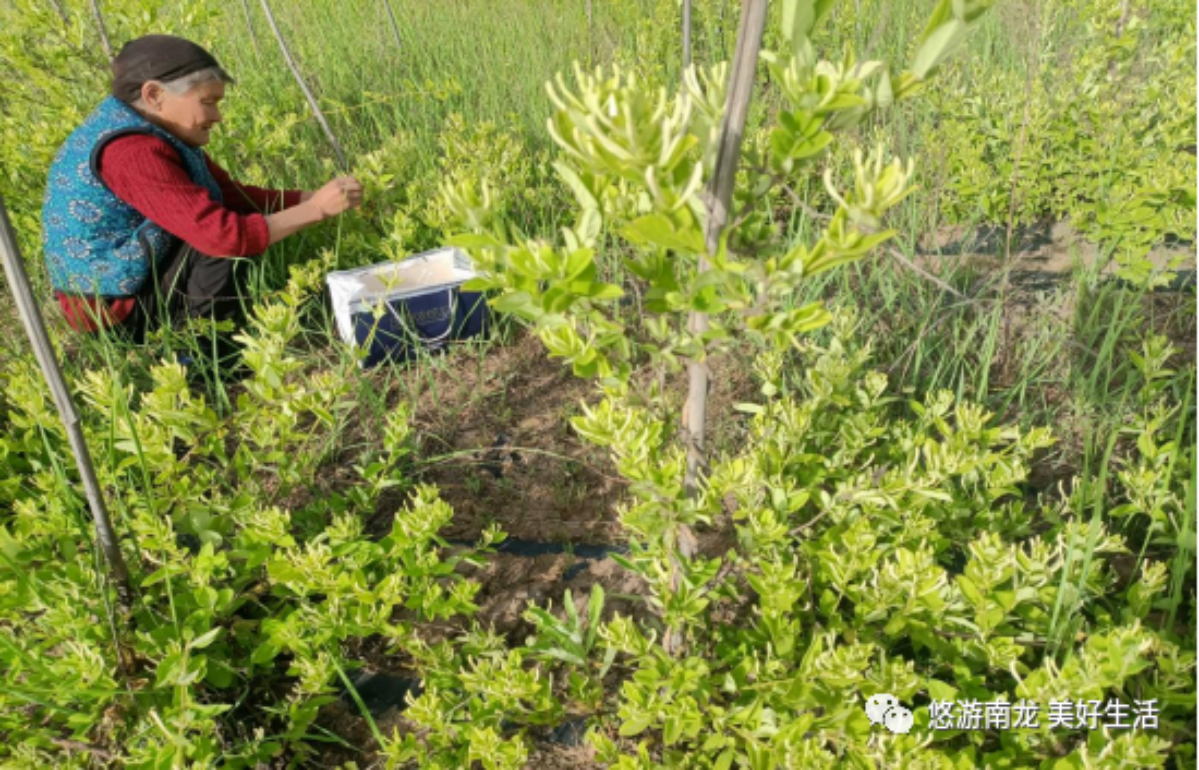 时下,南龙镇单子庄村金银花种植基地的百余亩金银花进入采摘季,满地的金花银蕊竞相开放,花香四溢,沁人心脾,群众正忙着采摘今年第一茬金银花。