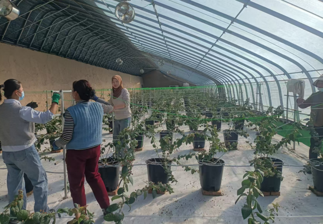 走进单子庄村蓝莓种植基地,一排排像盆景一样的蓝莓树长势喜人,一些已成熟的蓝莓悬挂在枝头,圆润饱满,晶莹剔透,十分诱人。在种植过程中,南龙镇单子庄村邀请临夏市科技局、市农技中心农业专家到村里开展栽培技术培训班,从种植技术、修剪技巧到病虫害防治,进行全方位科学指导,充分发挥联农、带农、助农的纽带作用,让群众对蓝莓种植与管理有更深入的了解,对依靠科技增收致富加强信心。