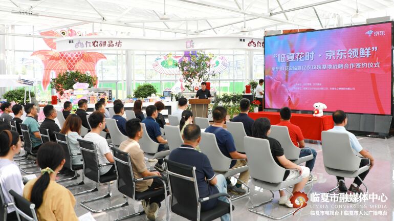 7月18日,京东鲜花·临夏亿农玫瑰基地战略合作签约仪式在临夏市牡丹产业园花卉艺术中心举行。京东集团京东鲜花总经理刘杨森出席会议并致辞,京东集团京东鲜花园艺商务负责人雒宝珠,京东集团京东鲜花源头直发采销负责人祁波,京东物流甘肃冷链医药业务部销售负责人窦正荣,市人大常委会副主任何秀美、市政府副市长马成宝、市政协副主席徐秀莉参加,马成宝致辞。