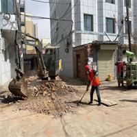 为确保拆除工作有序推进,街道工作人员帮助居民将杂物间的杂物进行搬运,随后由施工方进行集中拆除,搬运出的杂物由住户自行认领,两日后无人认领的将进行集中清运。在拆除过程中,城南街道严格落实环保湿法作业的相关要求,拆违现场全程洒水,最大限度地降低扬尘对周边环境的影响。通过街道工作人员的不懈努力,攻坚作战,房产局家属楼院内的所有杂物间实现有序、平稳、安全拆除。这使辖区居民的居住环境更加舒适,并且赢得了小区居民们的一致表扬。