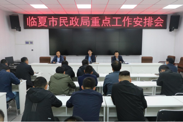 5月22日上午,临夏市民政局召开重点工作安排会议,局党组全体成员、科级干部、局属各单位主要负责人参加会议。会议由市民政局党组书记、局长马岩青同志主持。