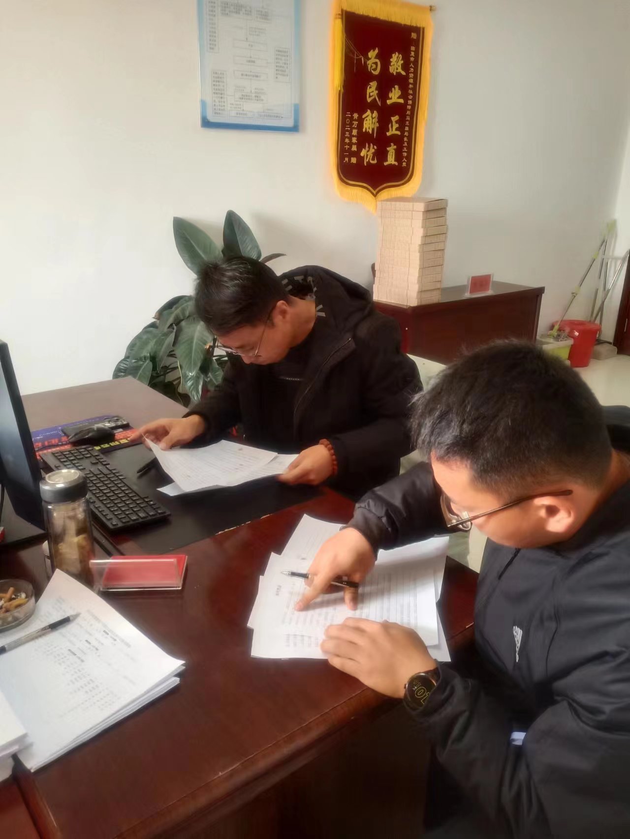 11月27日,市人社局就业服务中心工作人员参加2023年迎检备考村级资料审核工作安排会。
