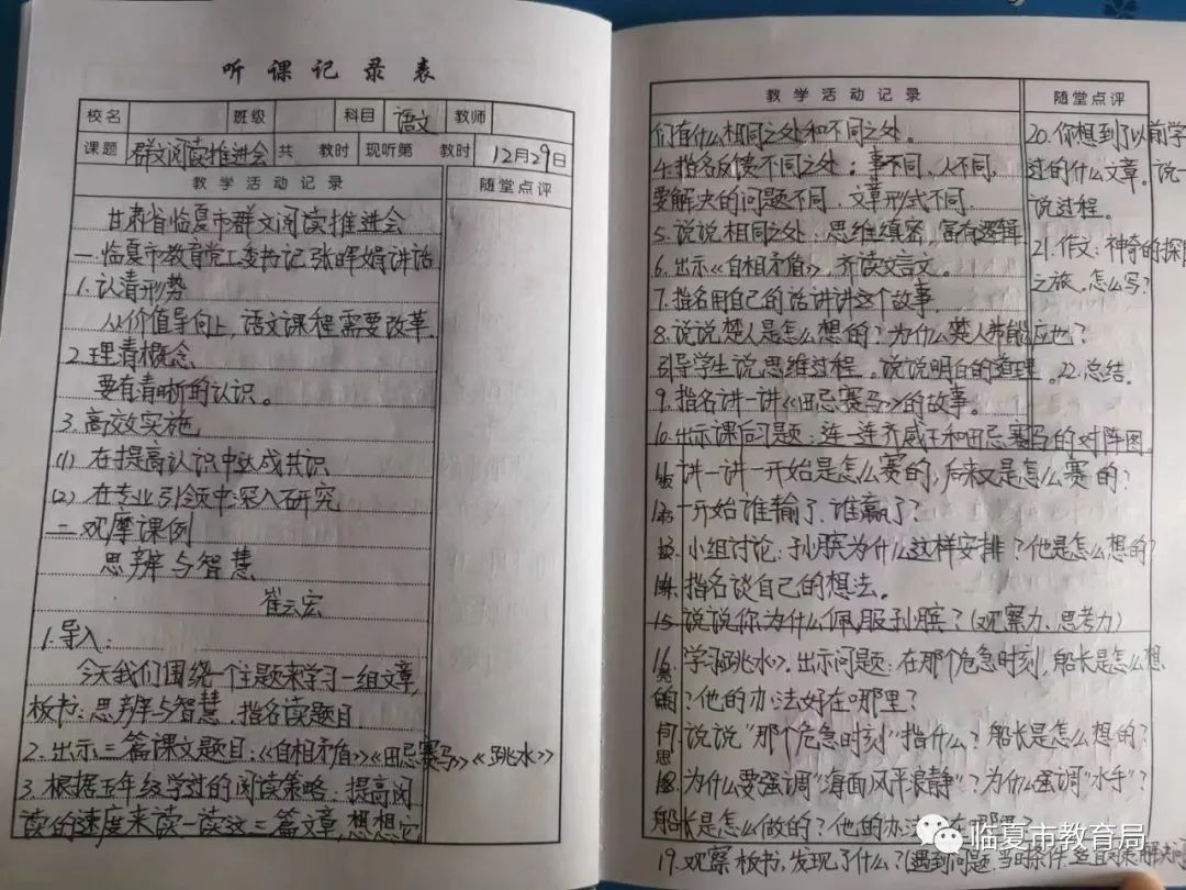 推进会号召,群文阅读项目实施要落到实处,真正地惠及我们的师生,推动我们临夏市教育改革的发展。一是要在提高认识中形成共识。各学校要进一步统一思想,把研究活动与课堂实践落到实处,不但要有长期打算和措施,更要有每一个步骤的具体行动要求,落实到日常的行政管理之中,落实到日常的课堂教学之中,落实到日常的校本教研之中。二是要在专业引领中深入研究。各学校要善于学习,精准实施项目,力争工作更细致、更具体、更具可操作性,从而更具有实效。希望我们能以群文阅读教学实践活动为契机,打造高效阅读课堂,实现各学科领域的协调共生,以阅读塑造国民精神,不断改进和优化课堂教学,从质上提高教育教学效率,提高基础教育教学质量,从而推进临夏市教育高质量发展,成为全州义务教育语文改革的先锋、高地。