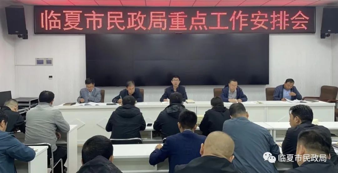 9月25日上午,临夏市民政局召开重点工作安排会议,局党组全体成员、科级干部、局属各单位主要负责人及机关全体干部职工参加会议。会议由市民政局党组书记、局长马岩青同志主持。