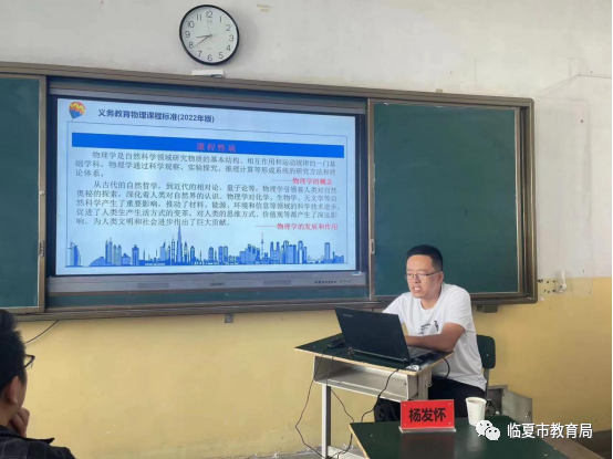 州级青年教学能手杨发怀从新课标修订背景、物理课程标准解读、本次义务教育课程修订的改革重点、案例(优秀课例展示)、教学建议等五个方面对物理课标进行了解读,对学科核心素养:物理观念、科学思维、科学探索、科学态度与责任做了深入的讲解。优秀课例展示侧重对“教—学—评”的一致性做了说明。