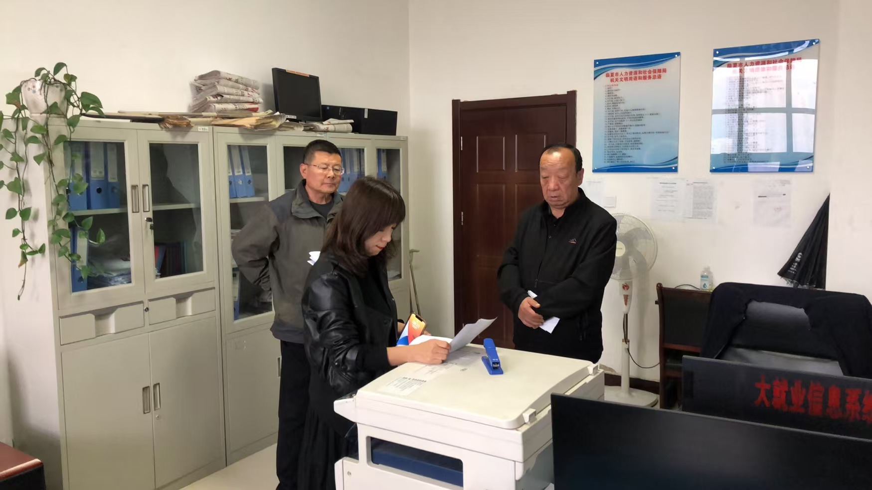 10月21日,市人社局就业促进股工作人员接待来访群众,认真解读就业困难人员认定政策及社保相关补贴政策。