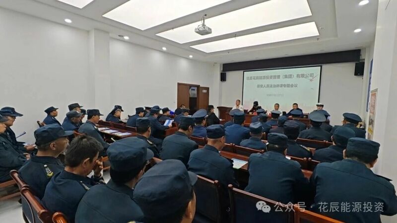 为全面提升保安团队合规履职能力,切实筑牢保安公司安全服务防线,近日,临夏河州花辰能源投资管理(集团)有限公司组织召开保安人员法治专题培训会议。花辰集团公司副总经理张永达、保安公司经理张军、临夏市公安局巡警大队马俊同志、临夏消防大队刘院平同志、临夏市公安交警大队范桂红同志出席会议并进行授课,保安公司50名代表参加。