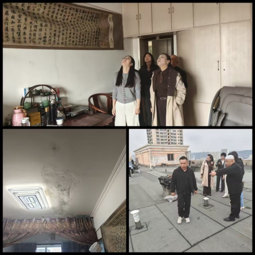 市物业指导服务中心会同城南街道、金鸽家政调查处理惠盛商厦业主反映的楼顶漏水问题。