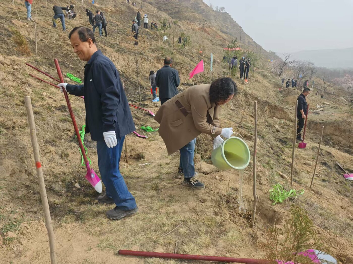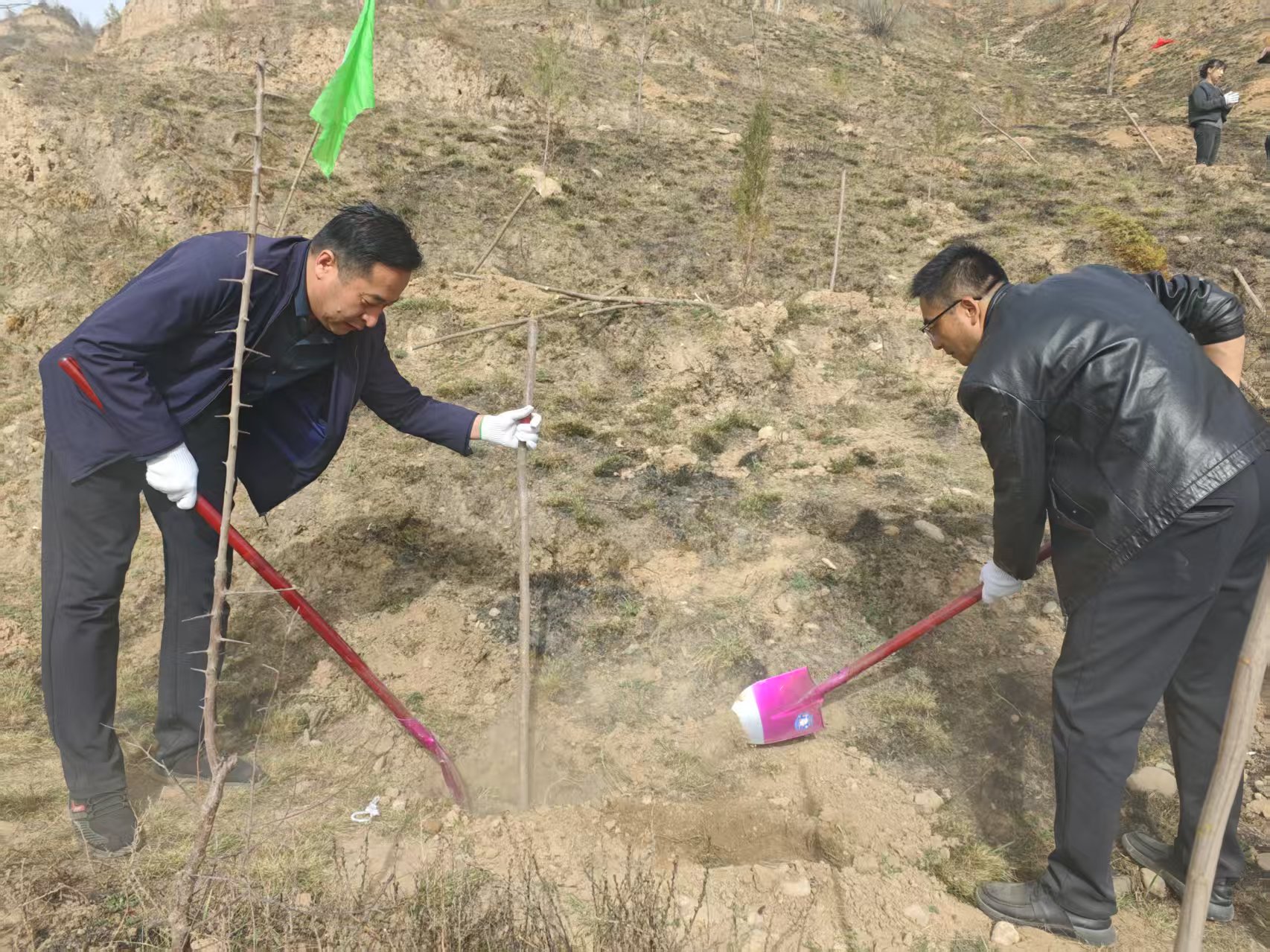 活动现场,干部职工们手持铁锹、水桶等工具,在林业技术人员的指导下,开展苗木种植工作。大家以饱满的热情投入劳动,挥锹铲土、扶苗填坑、围堰浇水,每一道工序都细致认真。经过一上午的努力,发改局干部职工圆满完成了60余株苗木的栽植任务,为初春的荒山披上了新绿。