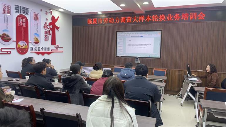 为确保我区劳动力调查大样本轮换工作顺利推进,扎实做好建筑物及住房摸底,全面提升调查数据质量与工作质效。1月20日,临夏市组织召开劳动力大样本轮换暨建筑物和住房摸底业务培训会。各相关镇街道分管统计的领导、新选聘的辅助调查员20人参加会议。