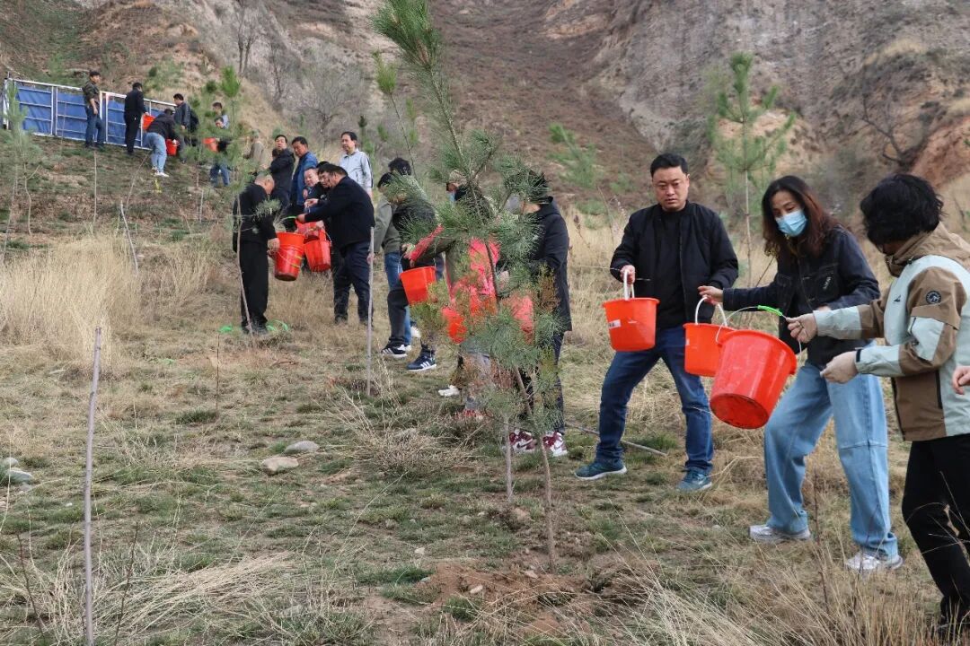 活动现场,春意盎然,一派热火朝天的劳动景象。党员干部们热情饱满、干劲十足,按股室划分为多个小组,分工协作、默契配合,各道工序衔接有序、一丝不苟。挥锹铲土、填入树坑、扶正树苗、踩实培土、提水浇灌,每一个环节都精准到位。在浇水环节,为提高效率、凝聚合力,大家自发排成一条整齐的队伍,有序传递水桶,每一个人都小心翼翼,确保水桶中的清水不洒漏,将每一滴水分都精准浇入新栽树苗的根部,细致呵护幼苗,用默契的配合传递着对绿色的期盼,也让每一株幼苗都能充分汲取水分,为后续生根发芽、茁壮成长筑牢基础。