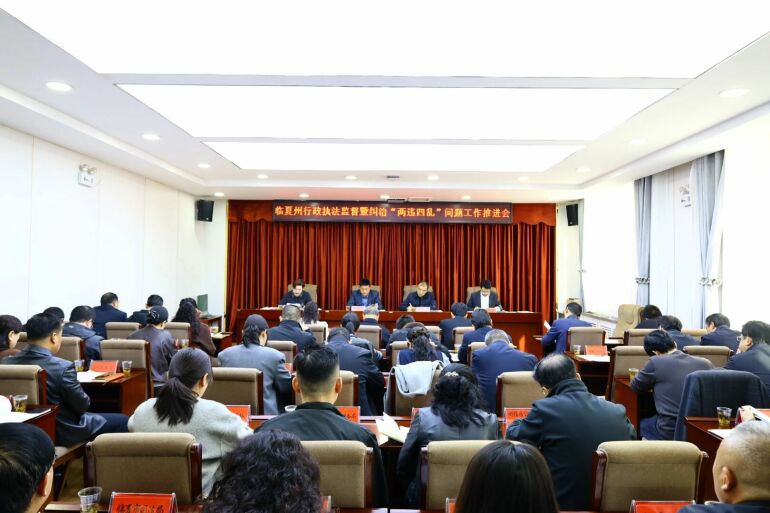 临夏州纠治“两违四乱”等问题专项工作机制组组长、副组长,监督工作专班副组长,州营商环境建设局分管负责同志和州级各行政执法单位分管负责同志,各县(市)司法局局长、分管局长参加会议。
