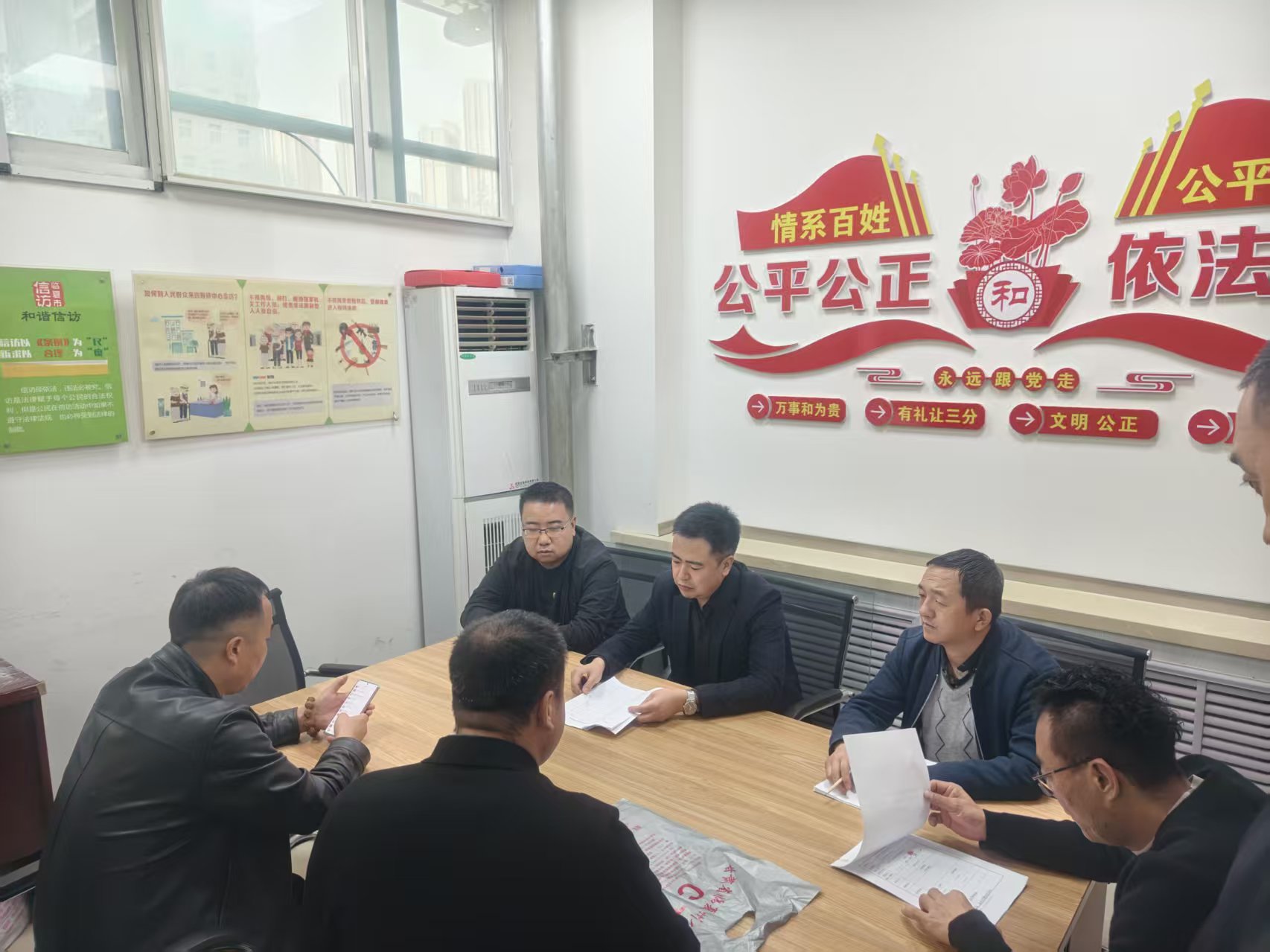 4月20日,调解仲裁股工作人员热情接待来访群众。