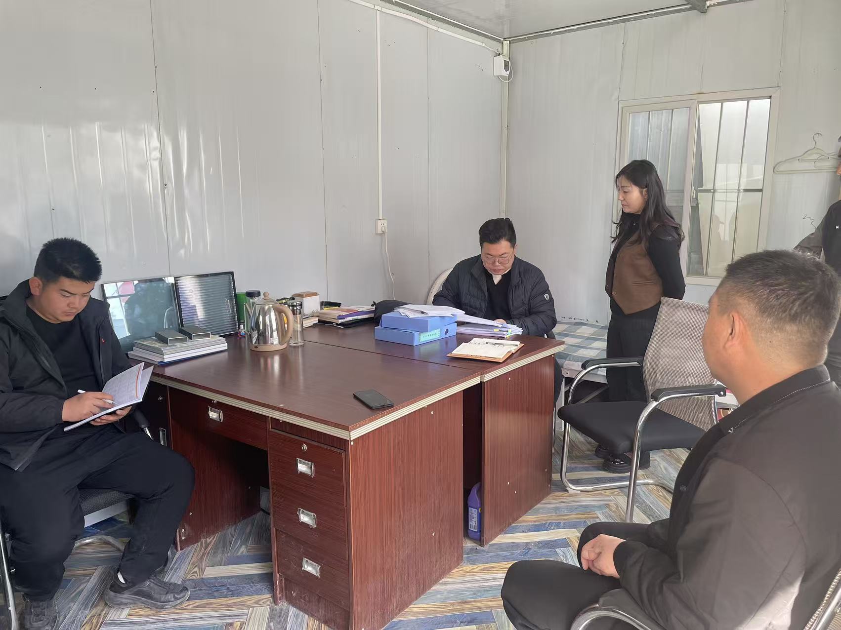3月4日,市劳动保障维权中心工作人员到某工程项目部开展检查工作。