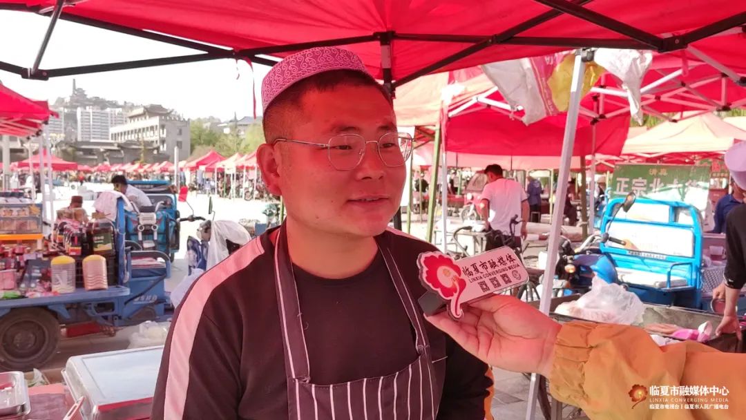 临夏市商户 马奴海:开斋节到了,我们的发子面肠、酿皮子、甜醅子等这些传统美食是必不可少的,把特色美食买回家过一个祥和的开斋节。