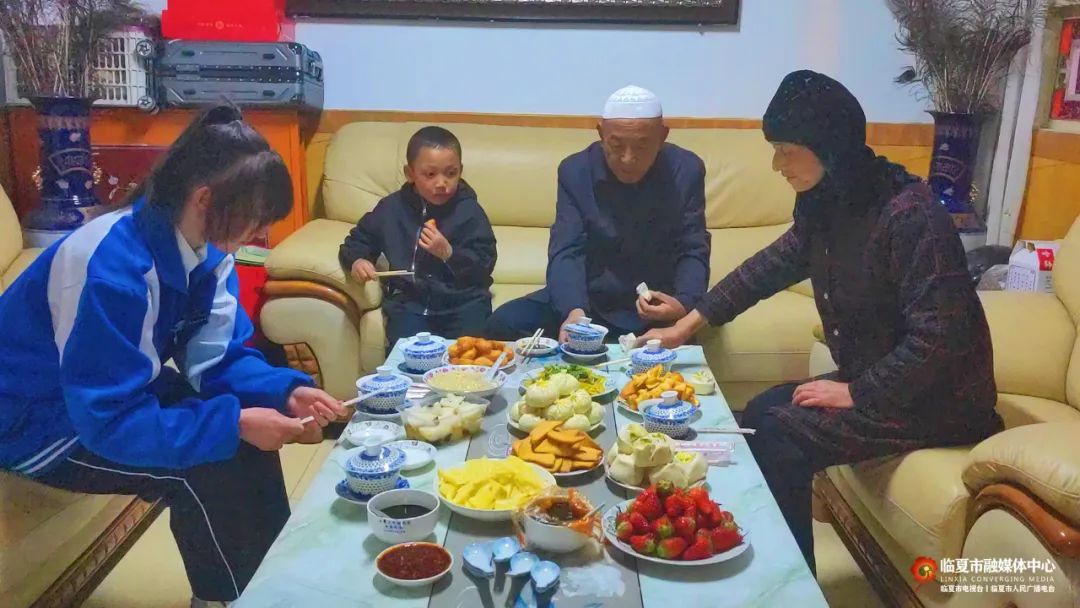 节日中,少数民族群众家家户户炸馓子、油果果等富有民族风味的传统食品,香气弥漫在每一个群众居住的村落和城市的大街小巷。家住临夏市城郊镇瓦窑村邓家庄的马志刚一家早早就着手准备开斋节的各种美食,河州包子、手抓羊肉、白斩鸡、粘糕等美食摆满了餐桌,其乐融融的一家人相聚在一起,唠着家常,孩子们在身边欢笑着跑来跑去。幸福的一家人沉浸在祥和欢乐的节日氛围中。