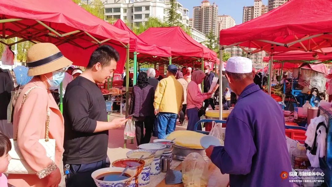 记者在红园广场看到,美食街上节日气氛浓郁,脸上溢满笑容的少数民族同胞,穿梭于美食的摊位之间,临夏大地笼罩在一片欢乐祥和、幸福安康的喜庆氛围中。同时,在临夏市各商场、超市、店铺中,琳琅满目的清真食品、小吃、干果等商品货源充足,前来购物的群众络绎不绝。