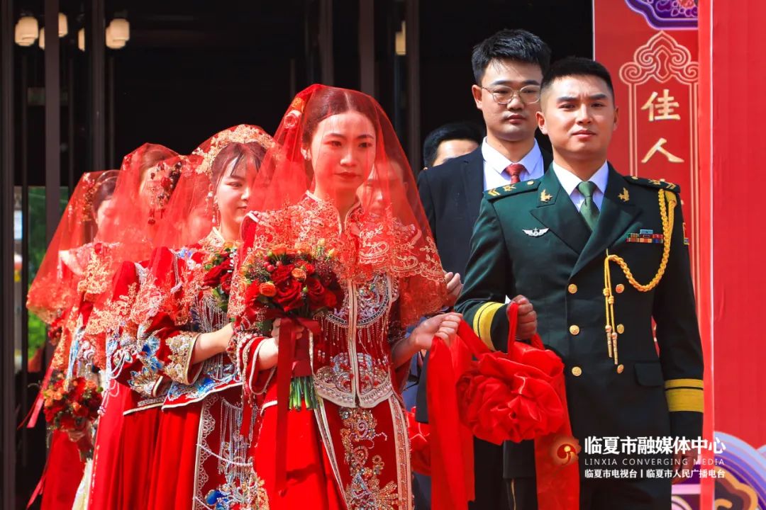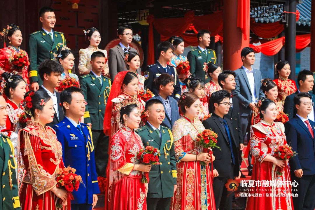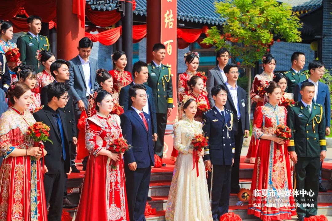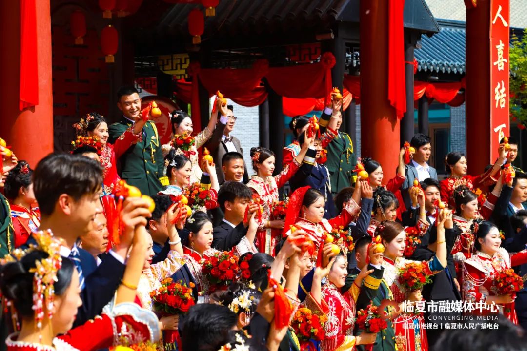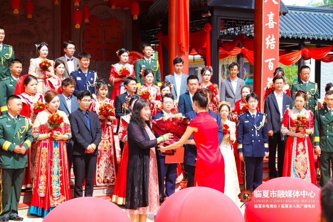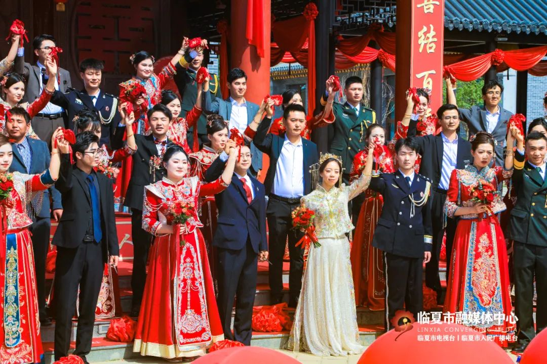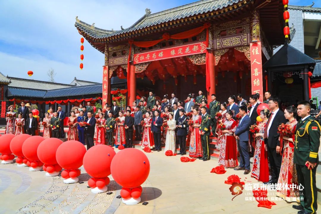 5月20日,“牡丹为媒 缘定花都”——临夏州市“移风易俗树典范 佳人喜结百年缘”集体婚礼在折桥大院举行。婚礼现场,随着锣鼓喧天的喜庆乐曲,33对新人身着中式婚服,手牵绣球登台,行婚典之仪:跨马鞍、掀盖头、结发礼、佩授礼、合卺茶、执手礼,共同许下了“相守一生 白头偕老”的幸福承诺。这场集体婚礼形式新颖、内涵丰富,不仅见证了浪漫纯真的忠贞爱情,而且成为一种新的婚礼打开方式,弘扬了文明时尚的社会新风。