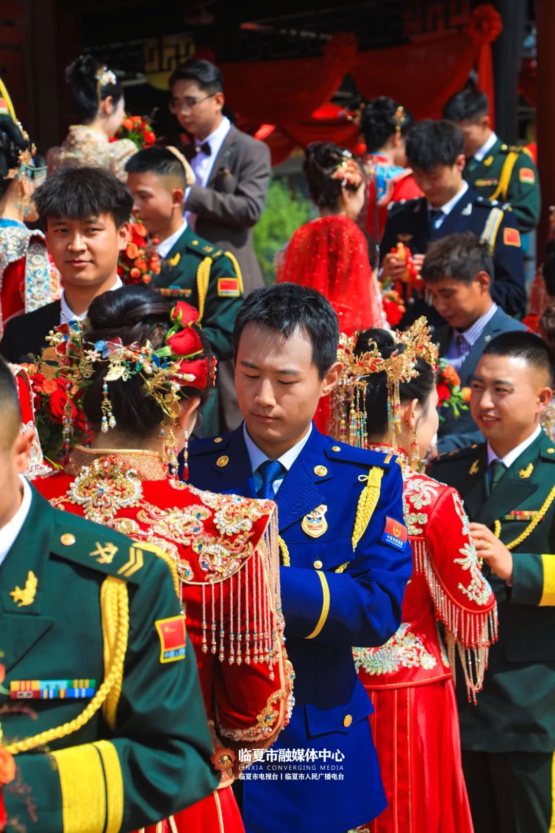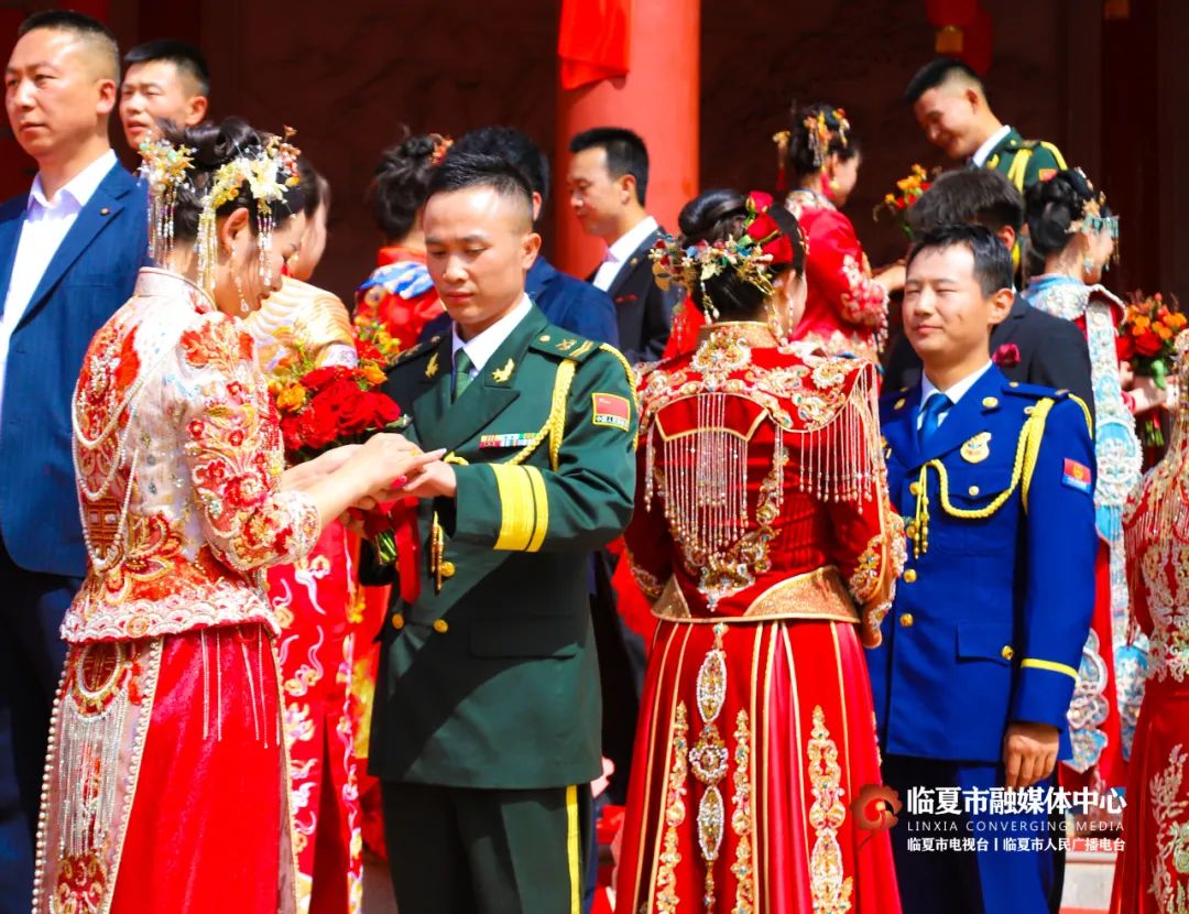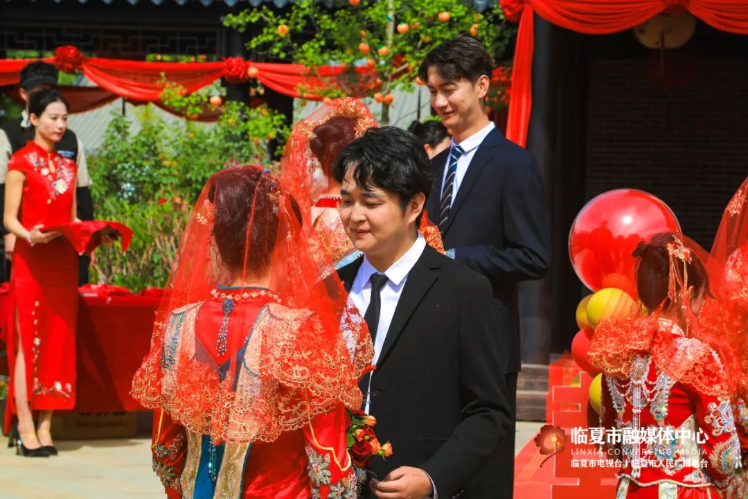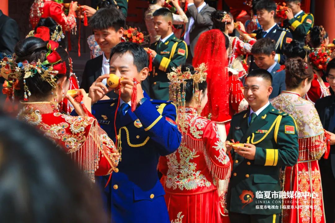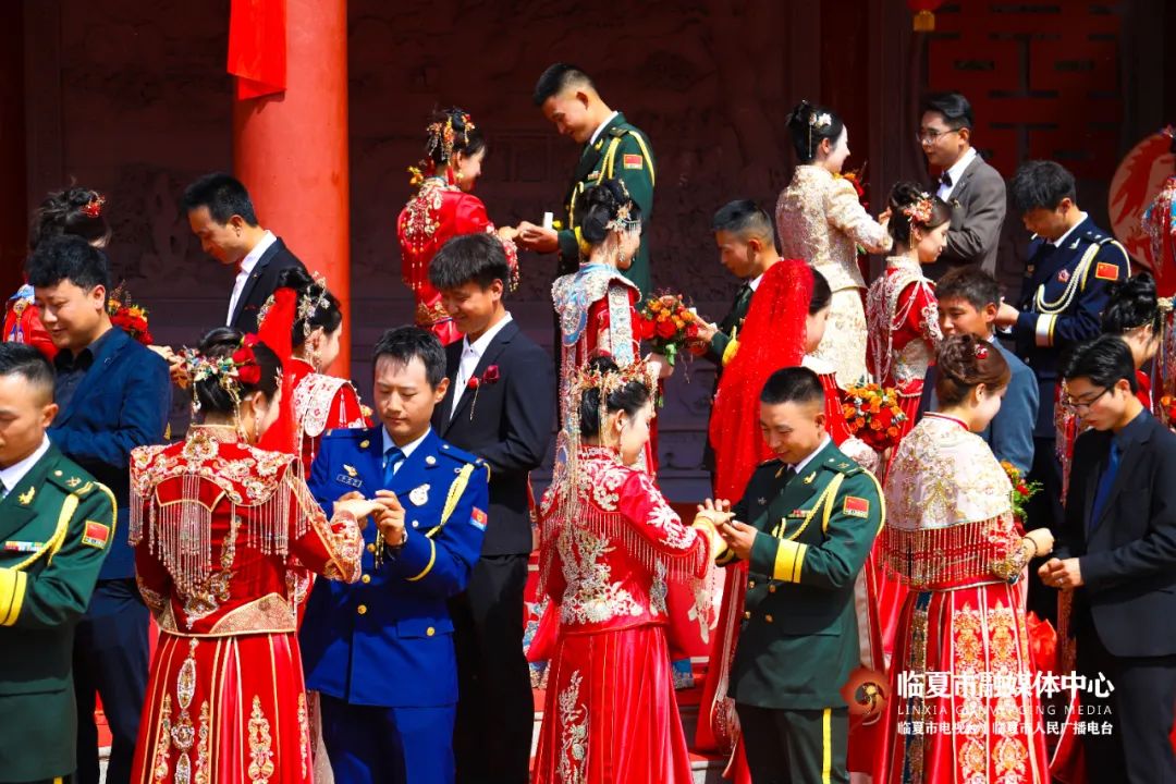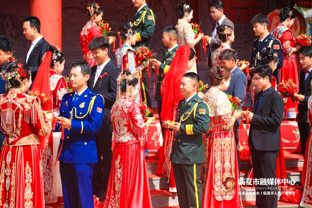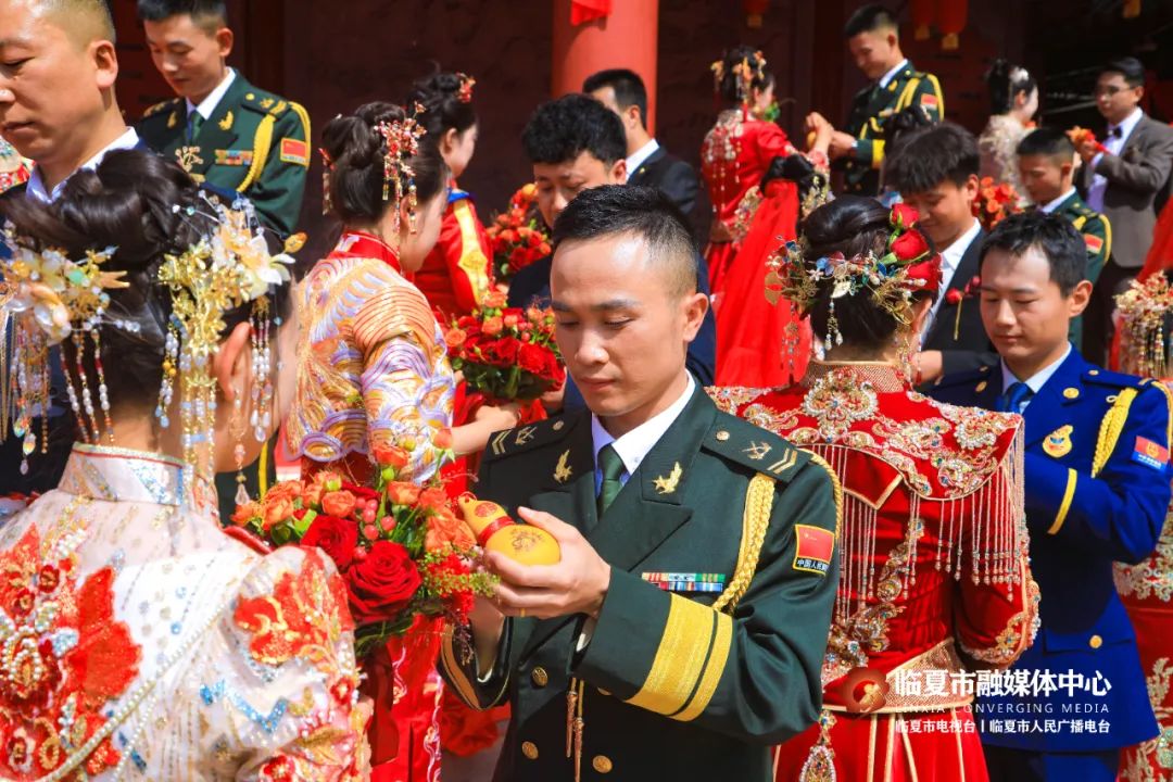 5月20日,“牡丹为媒 缘定花都”——临夏州市“移风易俗树典范 佳人喜结百年缘”集体婚礼在折桥大院举行。婚礼现场,随着锣鼓喧天的喜庆乐曲,33对新人身着中式婚服,手牵绣球登台,行婚典之仪:跨马鞍、掀盖头、结发礼、佩授礼、合卺茶、执手礼,共同许下了“相守一生 白头偕老”的幸福承诺。这场集体婚礼形式新颖、内涵丰富,不仅见证了浪漫纯真的忠贞爱情,而且成为一种新的婚礼打开方式,弘扬了文明时尚的社会新风。
