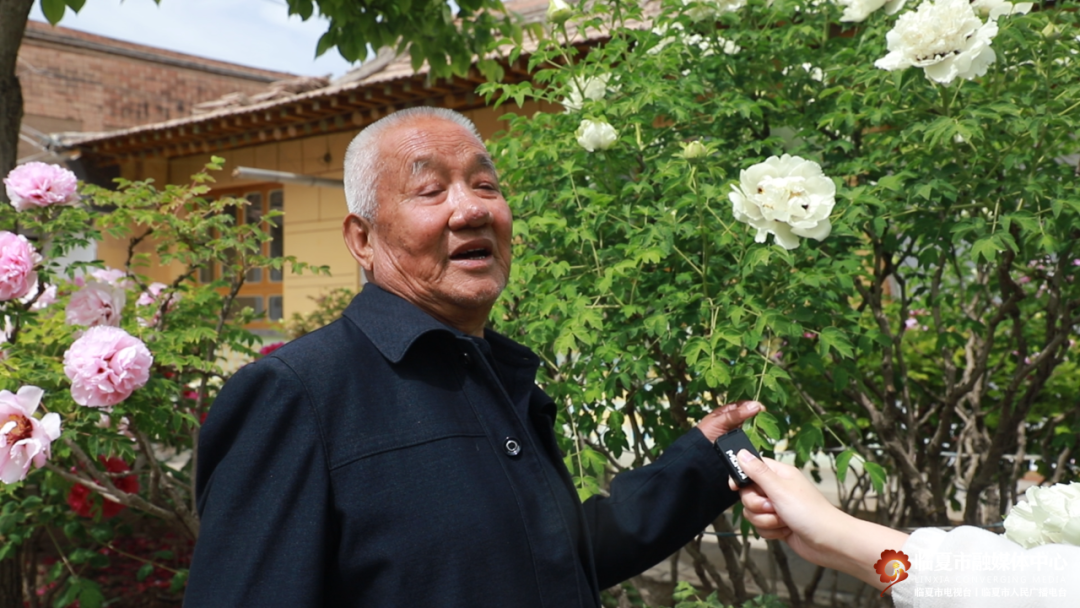 临夏市折桥镇陈马村村民 陈志明:这株橙色黄牡丹,是临夏马占龙先生培育的,我的花园里,树龄最长的有70多年,有些是从临洮、榆中引进的,绝大部分是我自己培育的,也已经培育有40多年了,从小就喜爱牡丹,退休以后就整天以牡丹为伴,调节心情。培育经验都是我自己摸索的,除了培育自然杂交以外还有嫁接,我也做了经验总结,也写了几篇论文。希望我们能多培育一些新的优良品种,为临夏紫斑牡丹留下一点好品种。