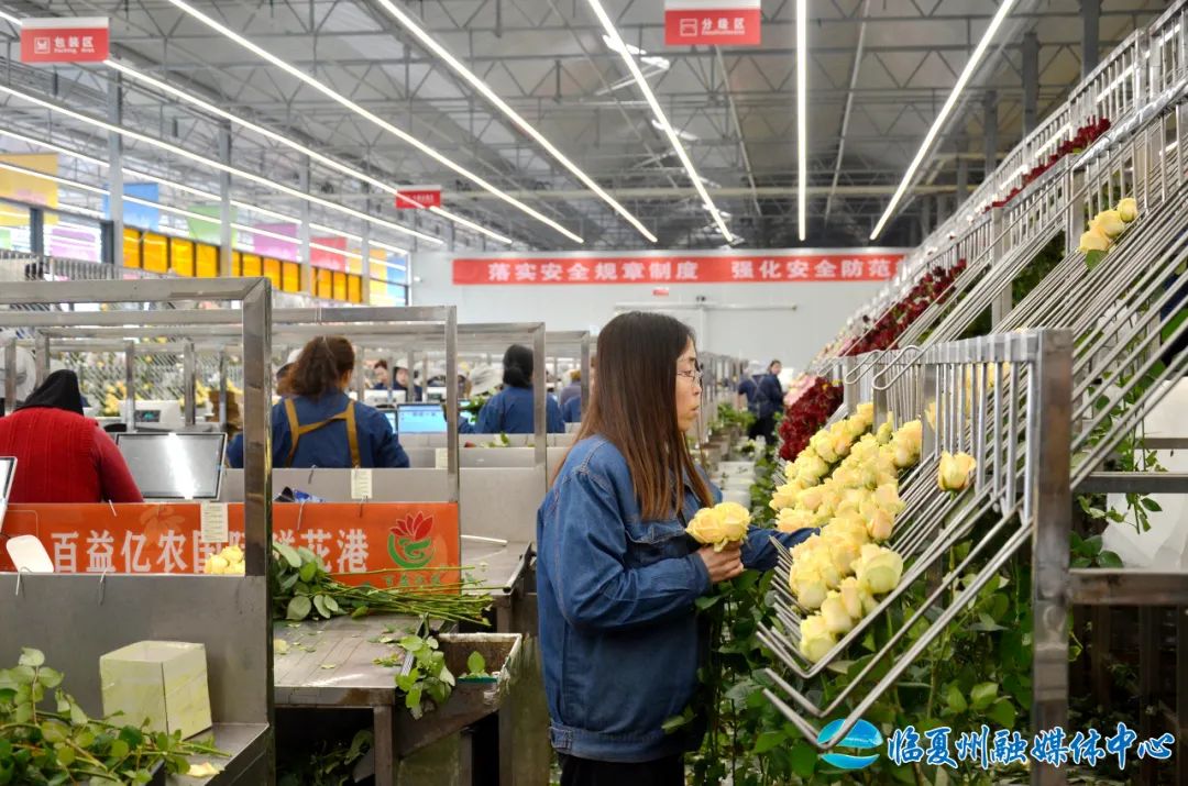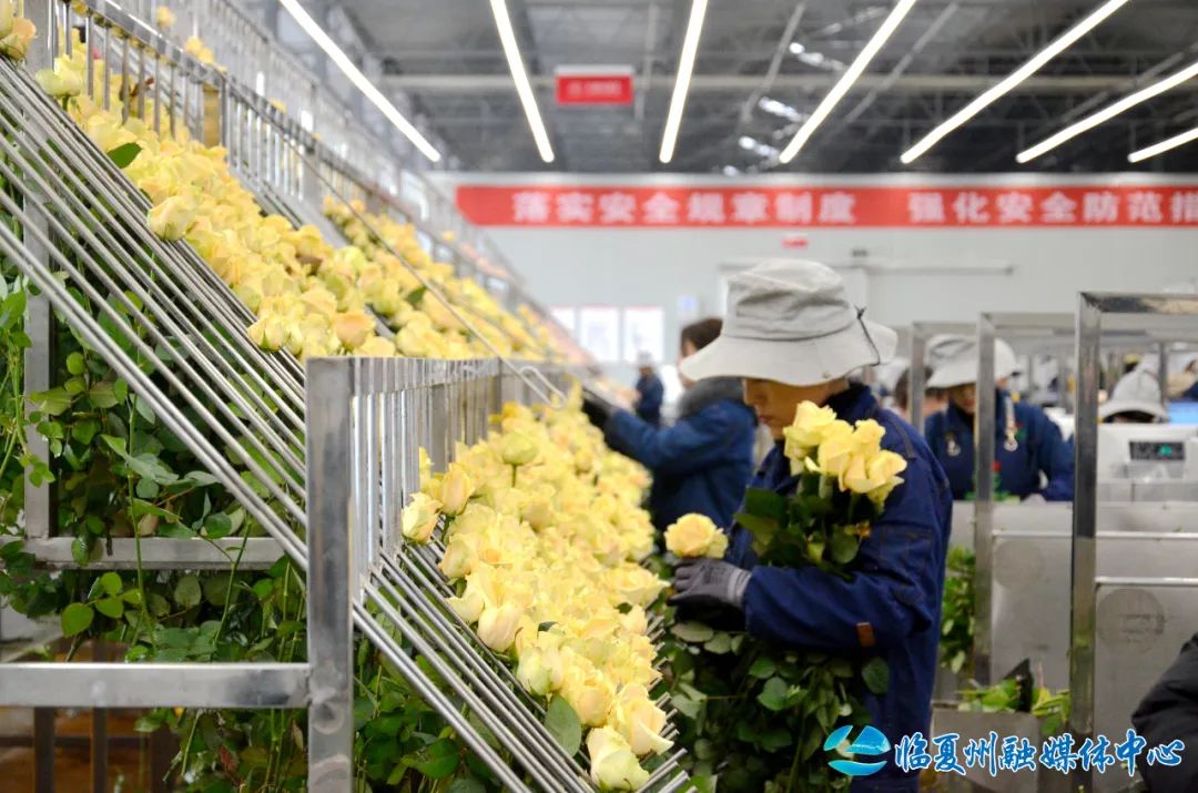 为应对节日鲜花销售高峰,鲜花港全力以赴,从生产端、销售端和人员配备等方面做足准备,以满足消费者需求。“公司每天生产18万只鲜切玫瑰花,都在当天发走。”临夏亿农农牧投资有限公司副总经理张晓亮说。在鲜花港20万平方米的高新智能温室,随处可见温度自动控制系统、水肥循环消毒灌溉系统、现代化温室生产物流系统等先进的科技设施。放眼望去,成排的鲜切玫瑰娇艳欲滴,红的似火、粉的如霞、白的像雪,它们在传送带上缓缓移动,宛如一条绚丽的彩带。分拣线上,女工们的目光专注而敏锐,只见她们手指翻飞,快速地从众多玫瑰中挑选出品质最佳的花朵。