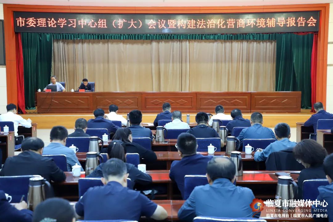 8月27日,市委理论学习中心组(扩大)会议暨构建法治化营商环境辅导报告会召开。市委书记马占才、市人大常委会主任马得祥、市委副书记王进忠及全体在家县级干部参加会议。