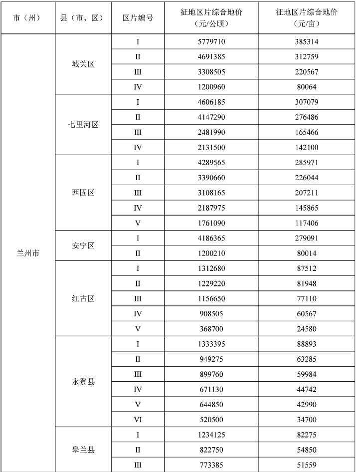 现将《甘肃省征收农用地区片综合地价标准》予以公布,请认真贯彻落实。2020年8月12日印发的《甘肃省征收农用地区片综合地价标准》(甘政发〔2020〕41号)同时废止。